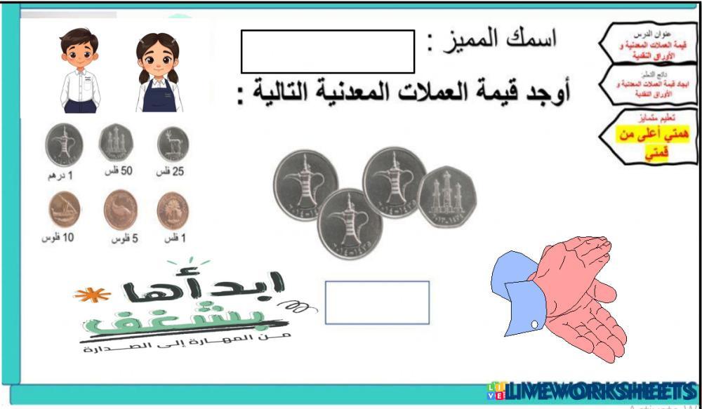 Created by nawsa Math Elementary 5th grade Time and Money Arabic Author's Instructions 1 My Google Classroom Courses × 0 classes selected (0 students total) Quick Access Select all classes (0 classes) All Classes Loading courses... Cancel Share Share to selected Course __COURSE_NAME__ __STUDENT_NAME__ (__STUDENT_EMAIL__) ورقة قيمة العملات المعدنية 1 Download Worksheet Validation Check my answers Emails my answers to my teacher Full name Group/level School subject Teacher's email or key code Close Submit Validating worksheet... (12) Your answers have been sent to your teacher. Good luck! OK We encountered an error submitting your answers. Please try again. OK Advertisement | Go Ad Free Created by nawsa Math Elementary 5th grade Time and Money Arabic Author's Instructions 1 Explore Worksheets ANPE SHEILA Math 5th grade ANPE SHEILA Time and Money - Math Ficha hardware y software Cộng, trừ số đo thời gian Math 5th grade Cộng, trừ số đo thời gian Time and Money - Math Đọc kĩ và làm theo yêu cầu Ôn tập về các đơn vị đo thời gian Math 5th grade Ôn tập về các đơn vị đo thời gian Time and Money - Math Đọc kĩ đề bài và thực hiện MERCADILLO MEDIEVAL Math 5th grade MERCADILLO MEDIEVAL Time and Money - Math ¿Sobra o falta dinero? Realiza esta ficha para averiguar cómo es el cuenteo de monedas.