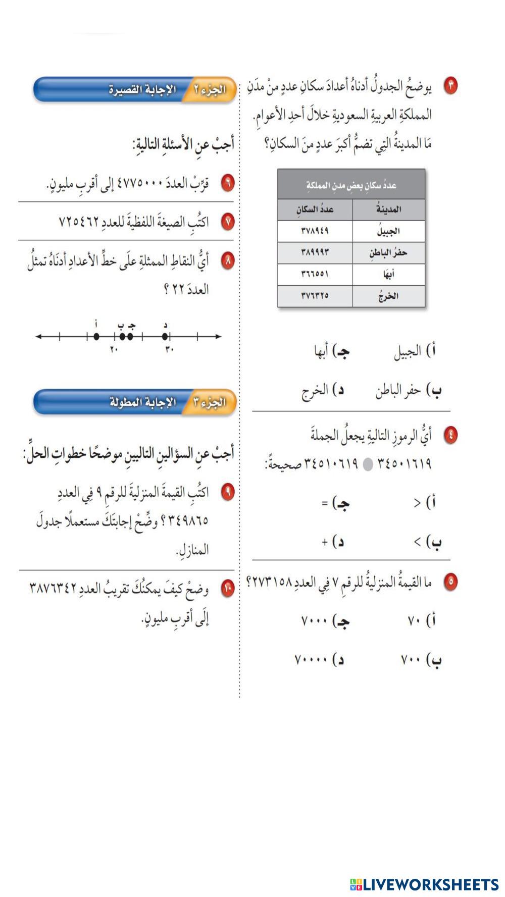 Created by reem170 math Maths Age 9-15 level: رابع Arabic Author's Instructions My Google Classroom Courses × 0 classes selected (0 students total) Quick Access Select all classes (0 classes) All Classes Loading courses... Cancel Share Share to selected Course __COURSE_NAME__ __STUDENT_NAME__ (__STUDENT_EMAIL__) اختبار الفصل Download Worksheet Validation Check my answers Emails my answers to my teacher Full name Group/level School subject Teacher's email or key code Close Submit Validating worksheet... (12) Your answers have been sent to your teacher. Good luck! OK We encountered an error submitting your answers. Please try again. OK Advertisement | Go Ad Free Created by reem170 math Maths Age 9-15 level: رابع Arabic Author's Instructions