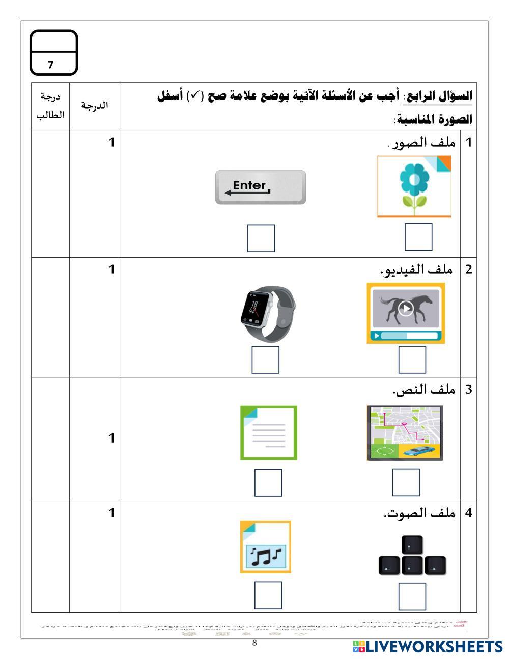 تقييمات شاملة للمفاهيم النظرية للصف الاول نهاية الفصل الدراسي الثاني