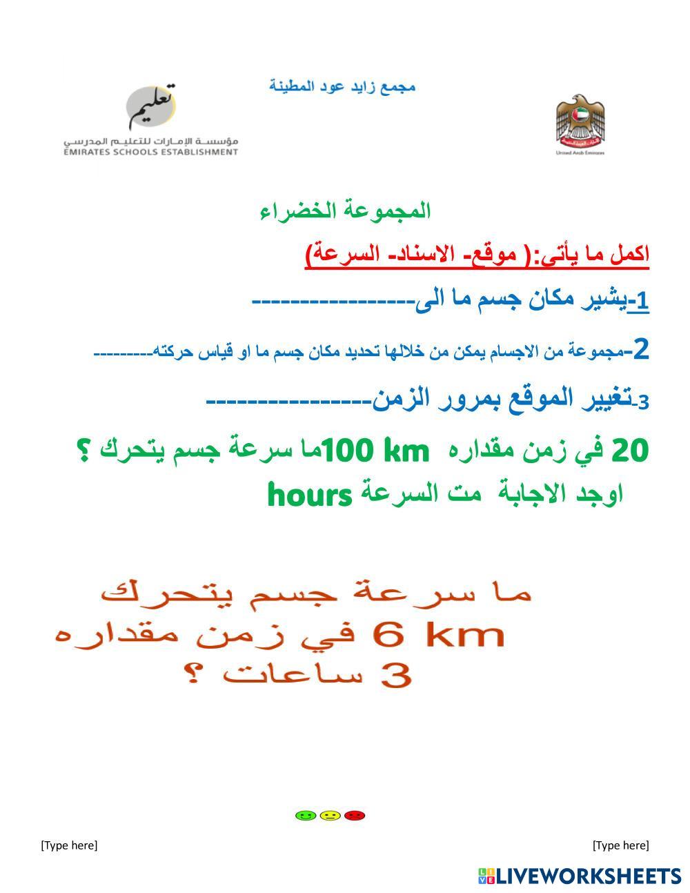 Created by ALAAXX Science Elementary 5th grade Physical Science Arabic Author's Instructions solve My Google Classroom Courses × 0 classes selected (0 students total) Quick Access Select all classes (0 classes) All Classes Loading courses... Cancel Share Share to selected Course __COURSE_NAME__ __STUDENT_NAME__ (__STUDENT_EMAIL__) الحركة3 Download Worksheet Validation Check my answers Emails my answers to my teacher Full name Group/level School subject Teacher's email or key code Close Submit Validating worksheet... (12) Your answers have been sent to your teacher. Good luck! OK We encountered an error submitting your answers. Please try again. OK Advertisement | Go Ad Free Created by ALAAXX Science Elementary 5th grade Physical Science Arabic Author's Instructions solve Explore Worksheets الحركة Science 5th grade الحركة Physical Science - Science اجب عن هذه الاسئلة الحركة Science 5th grade الحركة Physical Science - Science أجب عن هذه الاسئلة الحركة2 Science 5th grade الحركة2 Physical Science - Science حل الحركة Science 5th grade الحركة Physical Science - Science SOLVE