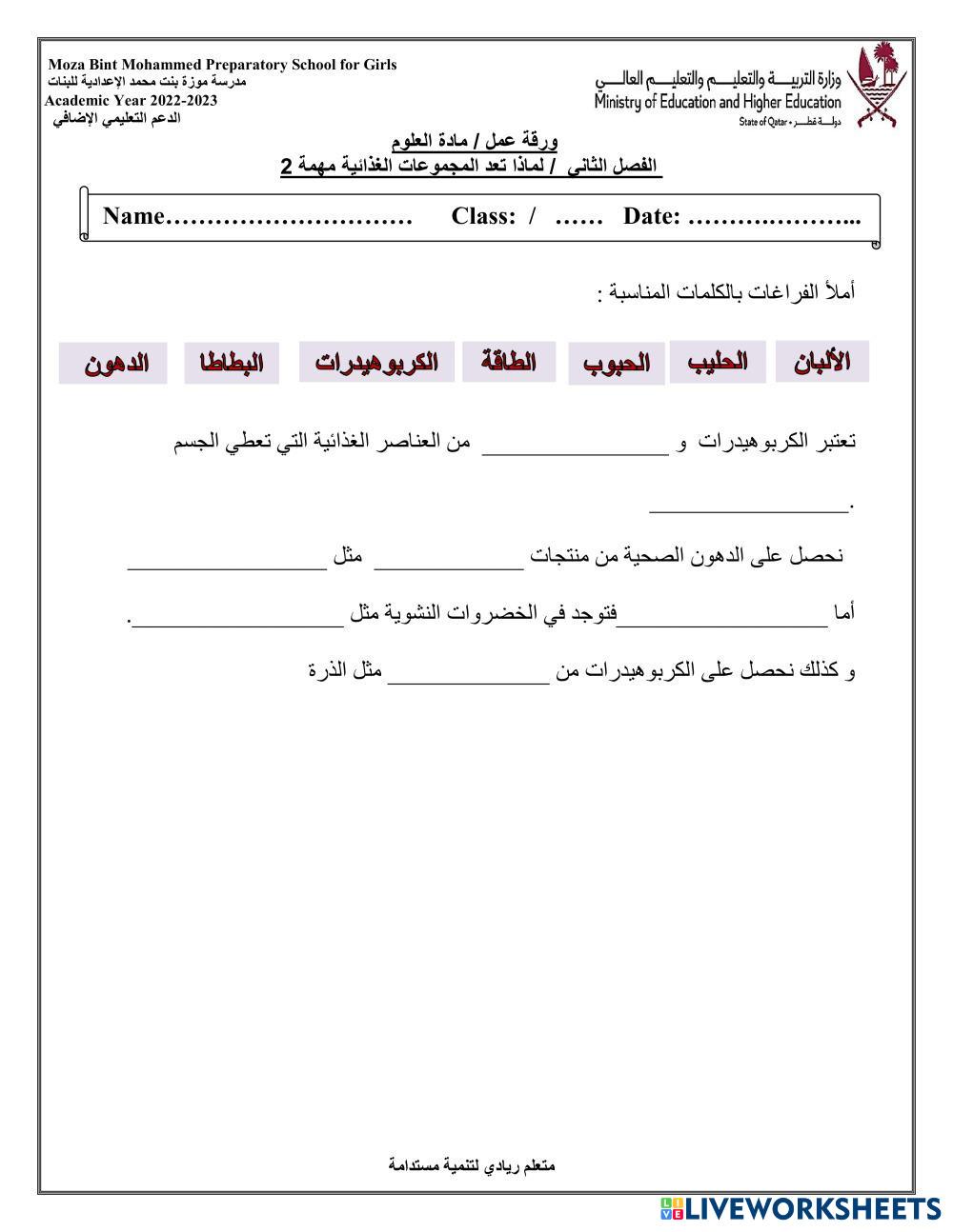 تذكر أهمية الدهون و الكربوهيدرات و مصادرها