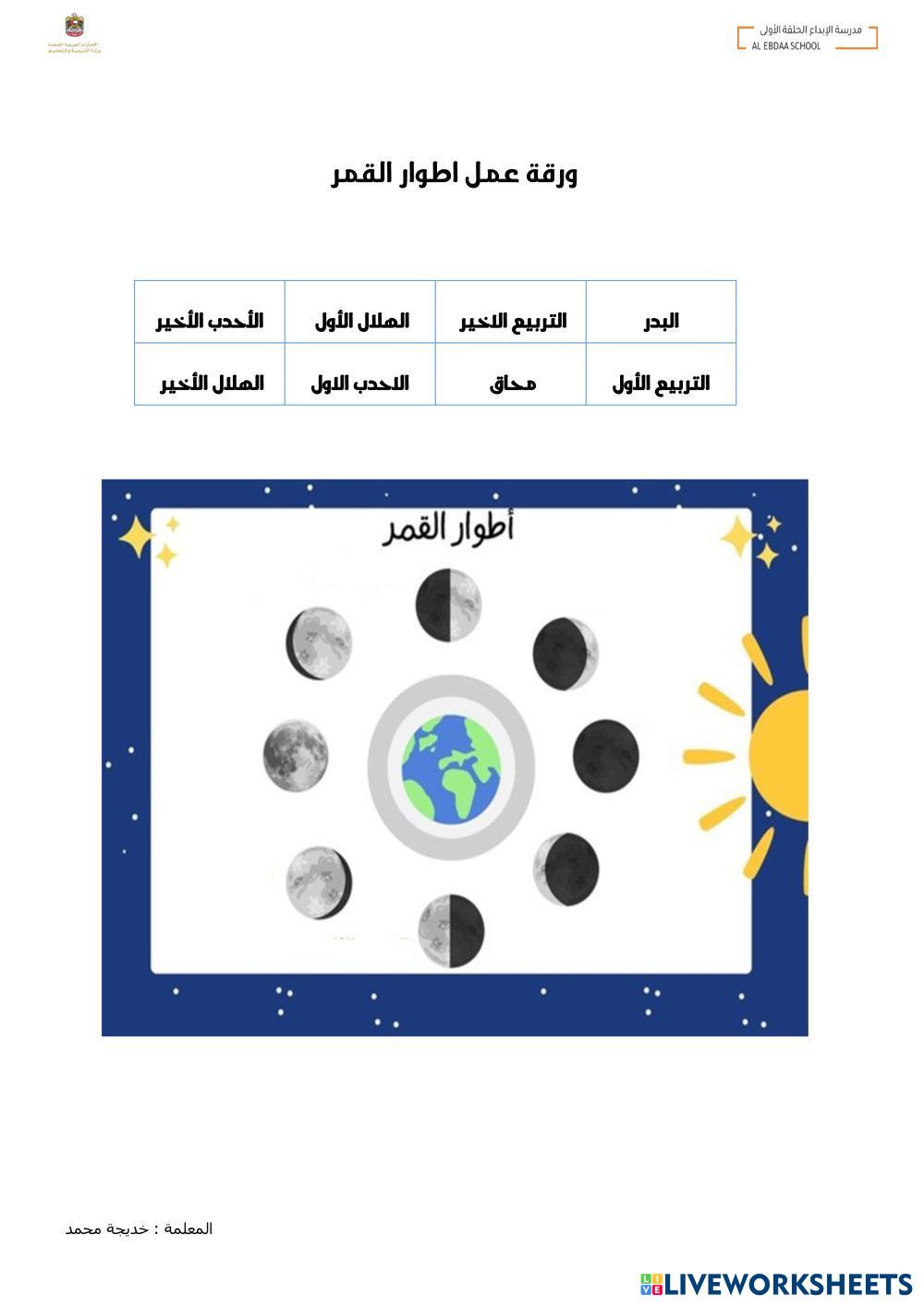 اضع المفردة المناسبة امام اطوار القمر