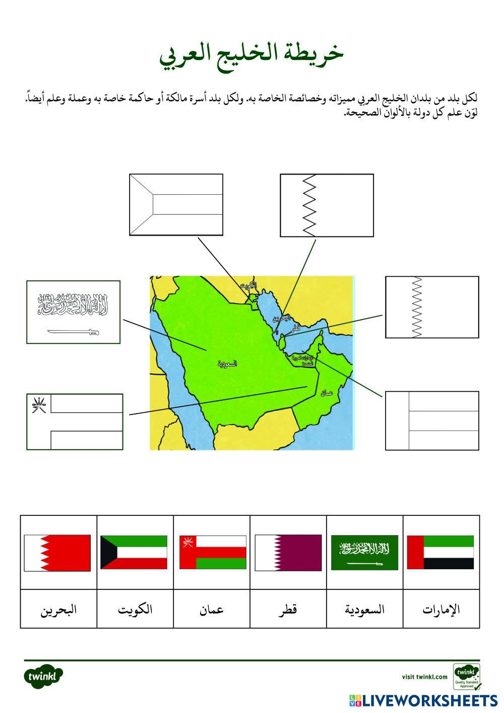 انظر إلى الخريطة و ضع العلم تحت الدولة في المكان المناسب