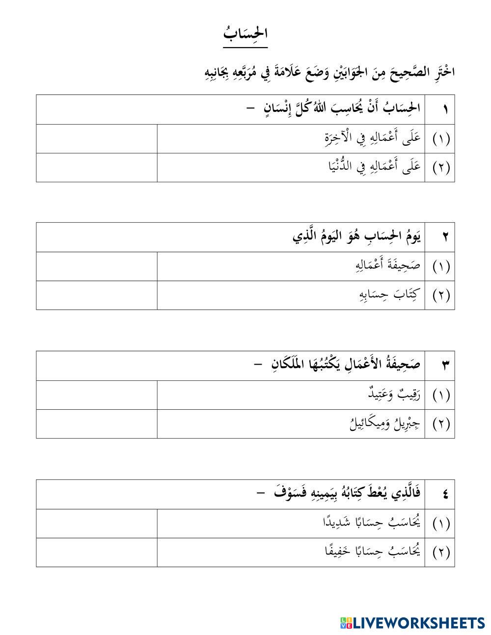 Created byJune Arifin Tauhid الحِسَابُ Age 11-14 level: 5 Arabic Author's Instructions My Google Classroom Courses × 0 classes selected (0 students total) Quick Access Select all classes (0 classes) All Classes Loading courses... Cancel Share Share to selected Course __COURSE_NAME__ __STUDENT_NAME__ (__STUDENT_EMAIL__) الحِسَابُ Download Worksheet Validation Check my answers Emails my answers to my teacher Full name Group/level School subject Teacher's email or key code Close Submit Validating worksheet... (12) Your answers have been sent to your teacher. Good luck! OK We encountered an error submitting your answers. Please try again. OK Advertisement | Go Ad Free Created byJune Arifin Tauhid الحِسَابُ Age 11-14 level: 5 Arabic Author's Instructions