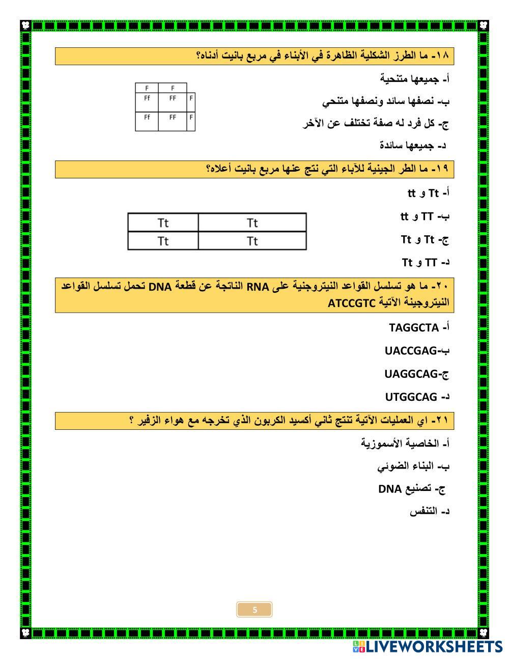 تدريبات عامة لمادة العلوم