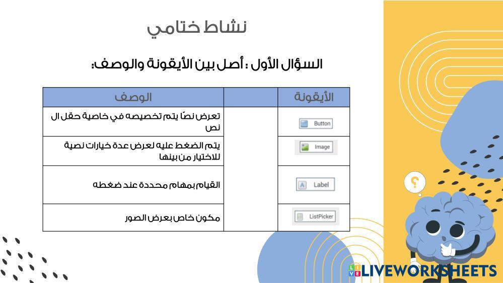Created bysketches تقنية رقمية نشاط ختامي Age 15 level: ١٢ Arabic Author's Instructions My Google Classroom Courses × 0 classes selected (0 students total) Quick Access Select all classes (0 classes) All Classes Loading courses... Cancel Share Share to selected Course __COURSE_NAME__ __STUDENT_NAME__ (__STUDENT_EMAIL__) تقنيـة Download Worksheet Validation Check my answers Emails my answers to my teacher Full name Group/level School subject Teacher's email or key code Close Submit Validating worksheet... (12) Your answers have been sent to your teacher. Good luck! OK We encountered an error submitting your answers. Please try again. OK Advertisement | Go Ad Free Created bysketches تقنية رقمية نشاط ختامي Age 15 level: ١٢ Arabic Author's Instructions