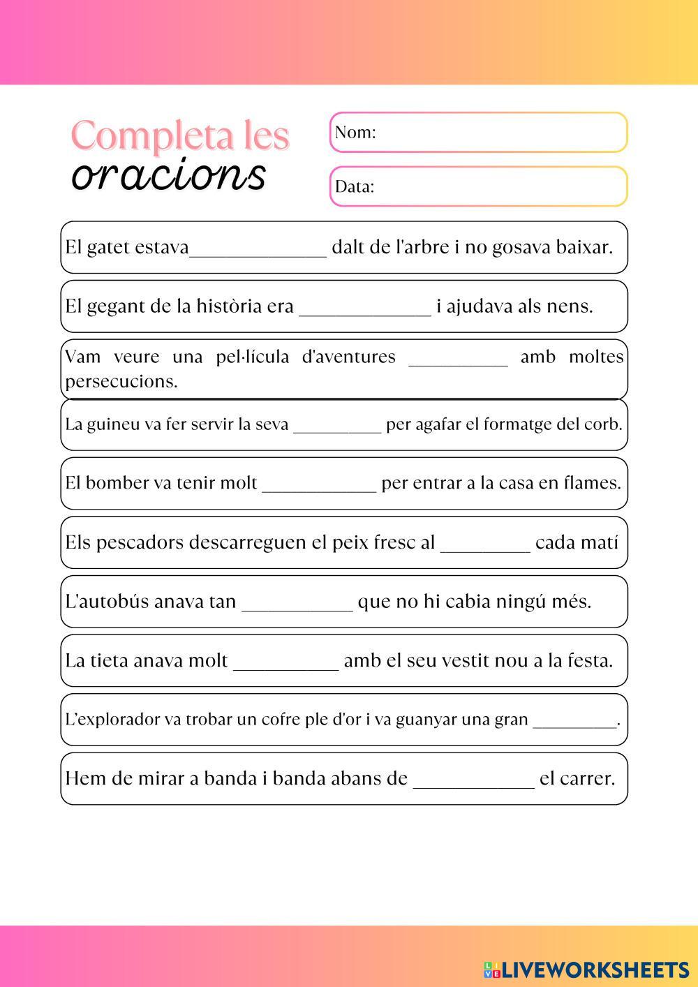 Created by noenit612 English Language Elementary 3rd grade Vocabulary Catalan Author's Instructions Escriu la paraula adequada a cada espai. My Google Classroom Courses × 0 classes selected (0 students total) Quick Access Select all classes (0 classes) All Classes Loading courses... Cancel Share Share to selected Course __COURSE_NAME__ __STUDENT_NAME__ (__STUDENT_EMAIL__) Corda de paraules 2 Download Worksheet Validation Check my answers Emails my answers to my teacher Full name Group/level School subject Teacher's email or key code Close Submit Validating worksheet... (12) Your answers have been sent to your teacher. Good luck! OK We encountered an error submitting your answers. Please try again. OK Advertisement | Go Ad Free Created by noenit612 English Language Elementary 3rd grade Vocabulary Catalan Author's Instructions Escriu la paraula adequada a cada espai. Explore Worksheets Kid's box 3 - end of quarter review English Language 3rd grade Kid's box 3 - end of quarter review Vocabulary - English Language on-site exam Kid's box 1 - end of quarter review English Language 3rd grade Kid's box 1 - end of quarter review Vocabulary - English Language on-site exam مولود جديد English Language 3rd grade مولود جديد Vocabulary - English Language Worksheet مولود جديد Fill in the banks English Language 3rd grade Fill in the banks Vocabulary - English Language Egészítsd ki a mondatokat a szövegkörnyezetbe illő szavakkal!