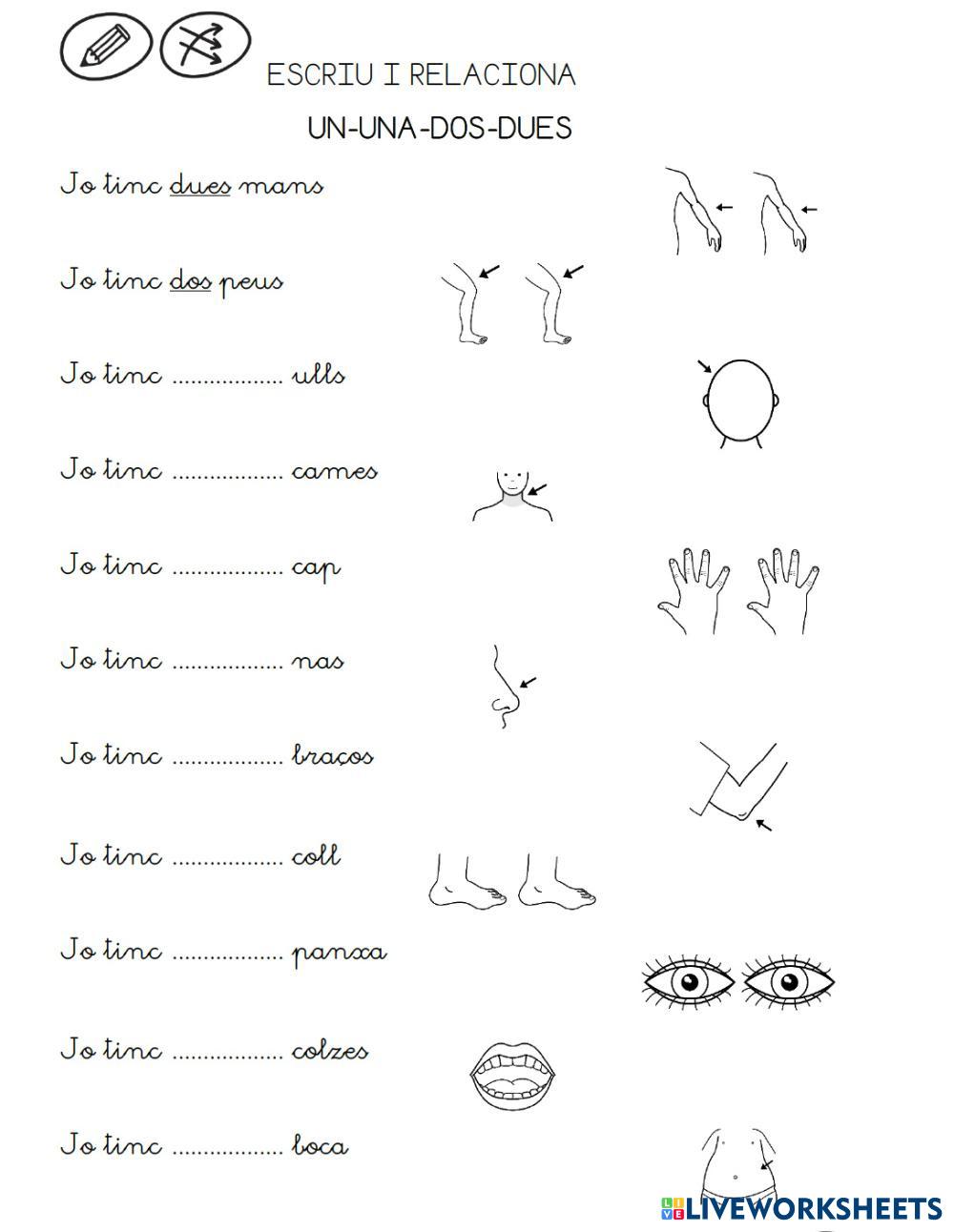 Created by milenasala Llengua catalana Números Age 6+ level: Aula d'acollida Catalan Author's Instructions My Google Classroom Courses × 0 classes selected (0 students total) Quick Access Select all classes (0 classes) All Classes Loading courses... Cancel Share Share to selected Course __COURSE_NAME__ __STUDENT_NAME__ (__STUDENT_EMAIL__) Nombres i parts del cos Download Worksheet Validation Check my answers Emails my answers to my teacher Full name Group/level School subject Teacher's email or key code Close Submit Validating worksheet... (12) Your answers have been sent to your teacher. Good luck! OK We encountered an error submitting your answers. Please try again. OK Advertisement | Go Ad Free Created by milenasala Llengua catalana Números Age 6+ level: Aula d'acollida Catalan Author's Instructions