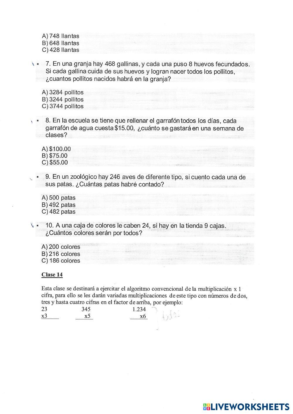 Created by 38019889 Math Elementary 3rd grade Multiplication and Division Cree Author's Instructions problemitas para multiplicar My Google Classroom Courses × 0 classes selected (0 students total) Quick Access Select all classes (0 classes) All Classes Loading courses... Cancel Share Share to selected Course __COURSE_NAME__ __STUDENT_NAME__ (__STUDENT_EMAIL__) emilia mc Download Worksheet Validation Check my answers Emails my answers to my teacher Full name Group/level School subject Teacher's email or key code Close Submit Validating worksheet... (12) Your answers have been sent to your teacher. Good luck! OK We encountered an error submitting your answers. Please try again. OK Advertisement | Go Ad Free Created by 38019889 Math Elementary 3rd grade Multiplication and Division Cree Author's Instructions problemitas para multiplicar Explore Worksheets Grade3-Maths-lesson27 Math 3rd grade Grade3-Maths-lesson27 Multiplication and Division - Math Multiplication, missing factor Division Math 3rd grade Division Multiplication and Division - Math Marca la respuesta correcta عائلة حقائق Math 3rd grade عائلة حقائق Multiplication and Division - Math أكمل عائلة الحائق RESOL AQUESTES MULTIPLICACIONS Math 3rd grade RESOL AQUESTES MULTIPLICACIONS Multiplication and Division - Math Has de resoldre les següents multiplicacions
