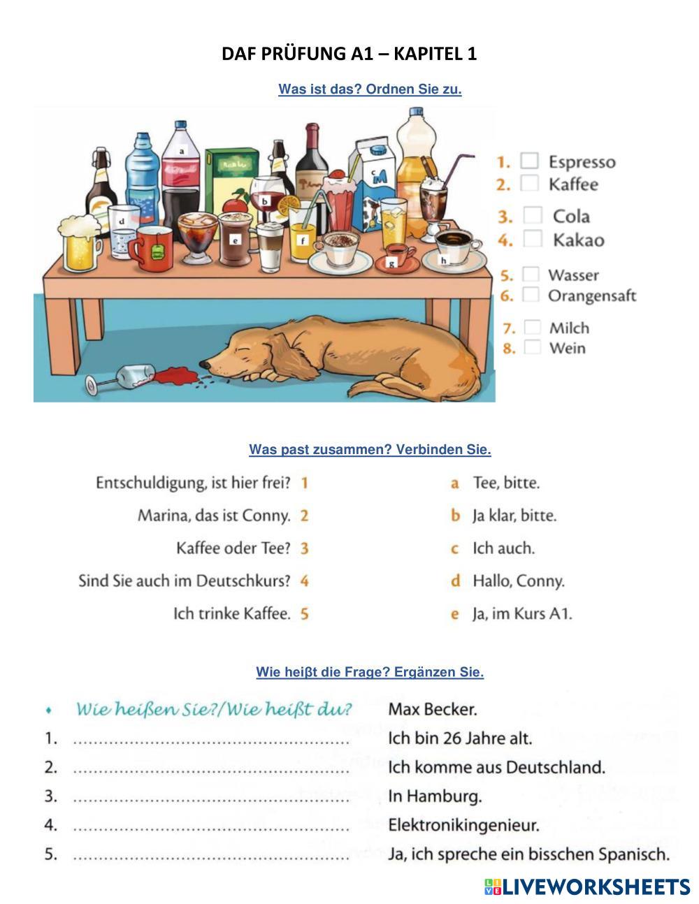 Created by Danibo Deutsch als Fremdsprache (DaF) Im Café Age 18+ level: a1 German Author's Instructions My Google Classroom Courses × 0 classes selected (0 students total) Quick Access Select all classes (0 classes) All Classes Loading courses... Cancel Share Share to selected Course __COURSE_NAME__ __STUDENT_NAME__ (__STUDENT_EMAIL__) PRUFÜNG A1 - KAPITEL 1 Download Worksheet Validation Check my answers Emails my answers to my teacher Full name Group/level School subject Teacher's email or key code Close Submit Validating worksheet... (12) Your answers have been sent to your teacher. Good luck! OK We encountered an error submitting your answers. Please try again. OK Advertisement | Go Ad Free Created by Danibo Deutsch als Fremdsprache (DaF) Im Café Age 18+ level: a1 German Author's Instructions