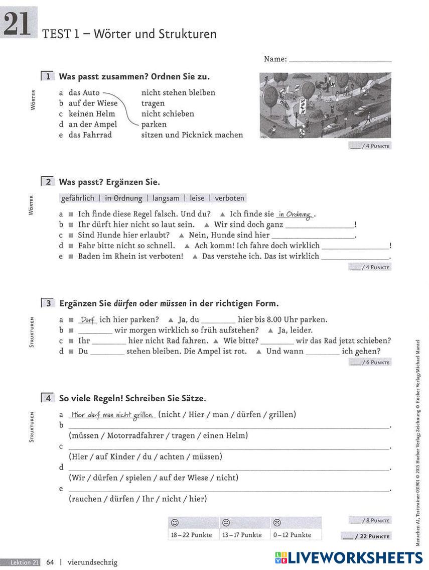 Created by margo0507 ESL German A1 Grammar German Author's Instructions Menschen A1.2 L21 Test My Google Classroom Courses × 0 classes selected (0 students total) Quick Access Select all classes (0 classes) All Classes Loading courses... Cancel Share Share to selected Course __COURSE_NAME__ __STUDENT_NAME__ (__STUDENT_EMAIL__) Menschen A1.2 L21 Test Download Worksheet Validation Check my answers Emails my answers to my teacher Full name Group/level School subject Teacher's email or key code Close Submit Validating worksheet... (12) Your answers have been sent to your teacher. Good luck! OK We encountered an error submitting your answers. Please try again. OK Advertisement | Go Ad Free Created by margo0507 ESL German A1 Grammar German Author's Instructions Menschen A1.2 L21 Test Explore Worksheets Rund um Gesundheit (Perfekt) ESL A1 Rund um Gesundheit (Perfekt) Grammar - ESL mach Perfekt (Wir smart 4) ESL A1 Perfekt (Wir smart 4) Grammar - ESL mach Ja, nein, doch ESL A1 Ja, nein, doch Grammar - ESL Ja, nein, doch Verb Konjugation ESL A1 Verb Konjugation Grammar - ESL Verbkonjugation