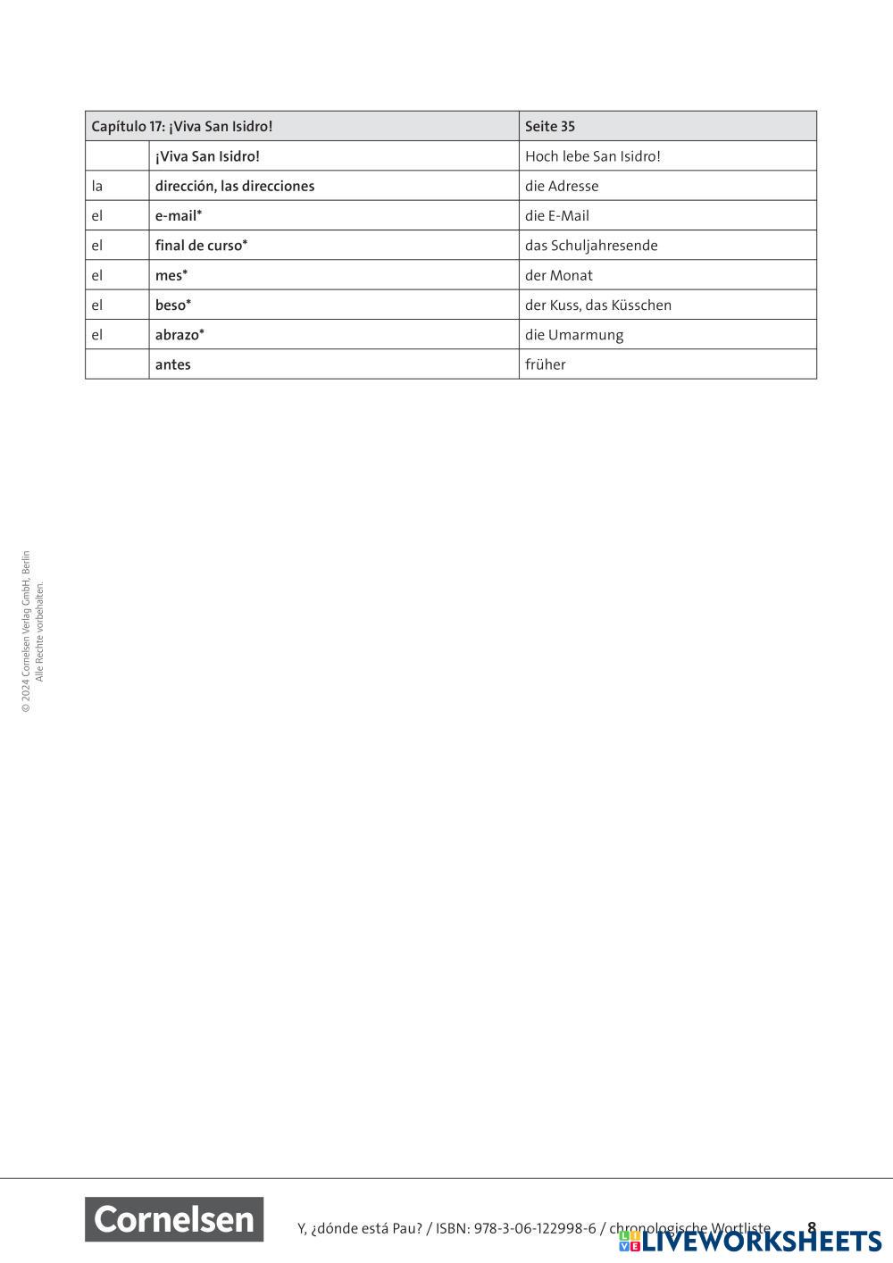 Created byAna Pons Blanca ESL Spanish A1 Grammar German Author's Instructions Completa los huecos con hay o estar, según convenga. My Google Classroom Courses × 0 classes selected (0 students total) Quick Access Select all classes (0 classes) All Classes Loading courses... Cancel Share Share to selected Course __COURSE_NAME__ __STUDENT_NAME__ (__STUDENT_EMAIL__) hay o estar Download Worksheet Validation Check my answers Emails my answers to my teacher Full name Group/level School subject Teacher's email or key code Close Submit Validating worksheet... (12) Your answers have been sent to your teacher. Good luck! OK We encountered an error submitting your answers. Please try again. OK Advertisement | Go Ad Free Created byAna Pons Blanca ESL Spanish A1 Grammar German Author's Instructions Completa los huecos con hay o estar, según convenga. Explore Worksheets wh questions ESL A1 wh questions Grammar - ESL use the wh questions to complete the exercises Wh- questions practice Worksheet ESL A1 Wh- questions practice Worksheet Grammar - ESL Grade: 6th. Unit 4. Museum Trips. Vocabulary: Museum Trips. Performance Indicator: The student aks and answer Wh questios with pictures in affirmative and negative statements. Verbos regulares en pretérito indefinido. Pronombre VOS. ESL A1 Verbos regulares en pretérito indefinido. Pronombre VOS. Grammar - ESL Completa las oraciones con verbos regulares en pretérito indefinido. REPASO SA 5 25.26 ESL A1 REPASO SA 5 25.26 Grammar - ESL REPASO SA 5 25.26