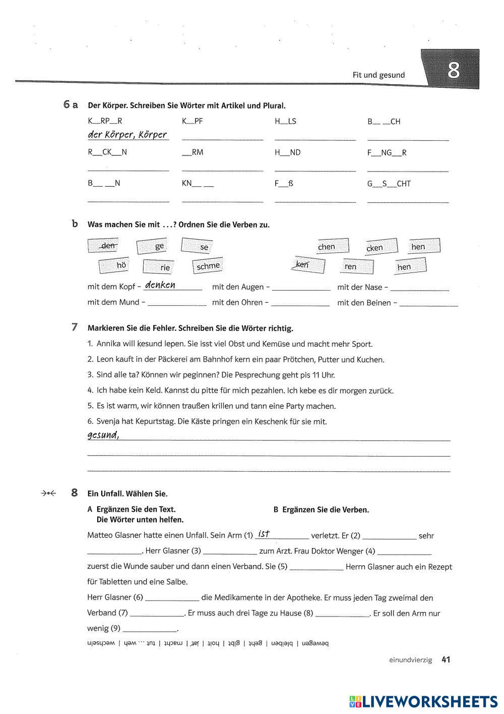 Created byAnh Thu Tran ESL German A1 Grammar German Author's Instructions lösen Sie die Aufgaben My Google Classroom Courses × 0 classes selected (0 students total) Quick Access Select all classes (0 classes) All Classes Loading courses... Cancel Share Share to selected Course __COURSE_NAME__ __STUDENT_NAME__ (__STUDENT_EMAIL__) nwn a1 intensiv kap 8 Download Worksheet Validation Check my answers Emails my answers to my teacher Full name Group/level School subject Teacher's email or key code Close Submit Validating worksheet... (12) Your answers have been sent to your teacher. Good luck! OK We encountered an error submitting your answers. Please try again. OK Advertisement | Go Ad Free Created byAnh Thu Tran ESL German A1 Grammar German Author's Instructions lösen Sie die Aufgaben Explore Worksheets Dativpronomen ESL A1 Dativpronomen Grammar - ESL Dativpronomen Präpositionen mit Dativ und Akkusativ / In der Stadt ESL A1 Präpositionen mit Dativ und Akkusativ / In der Stadt Grammar - ESL mach 1 ESL A1 1 Grammar - ESL 111 Perfekt mit haben oder sein ESL A1 Perfekt mit haben oder sein Grammar - ESL Mach Übungen!