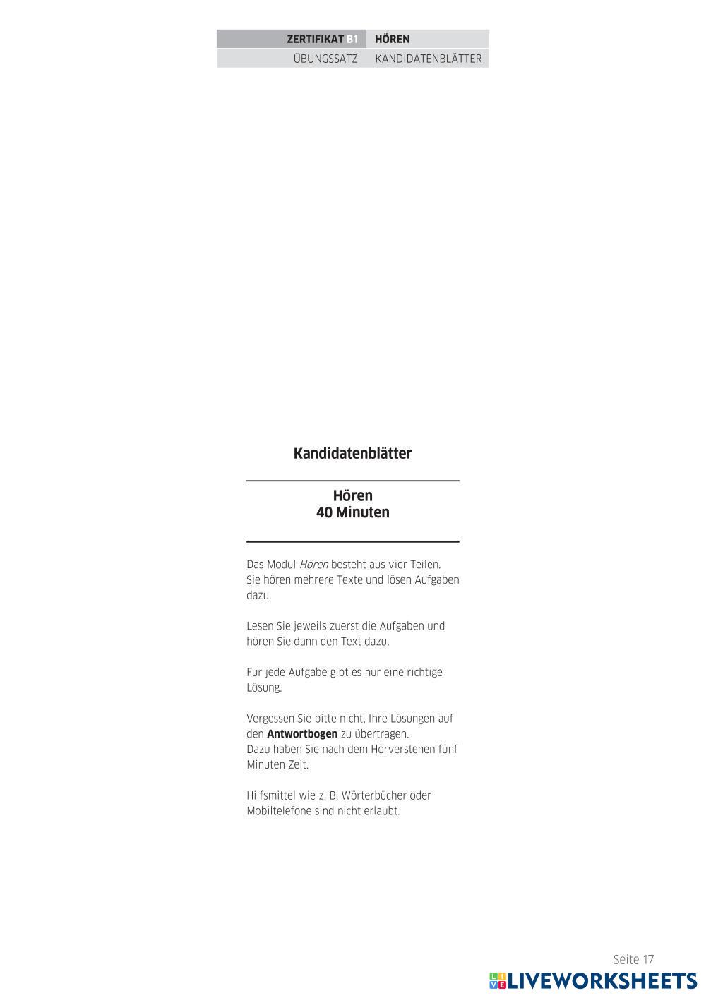 Das Modul Hören besteht aus vier Teilen. Sie hören mehrere Texte und lösen Aufgaben dazu.
