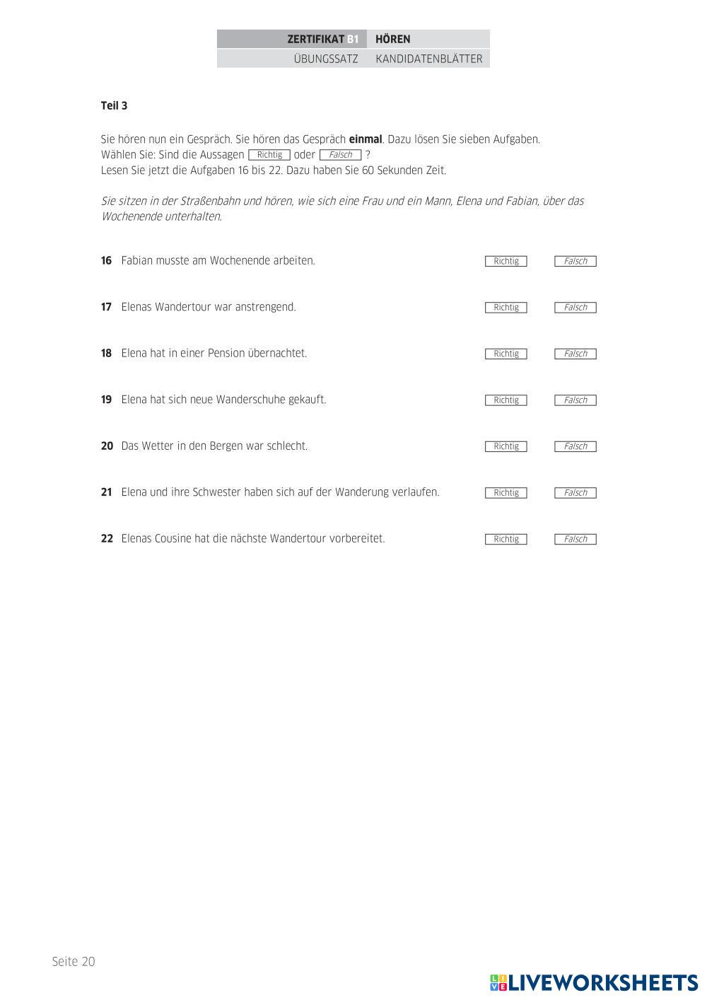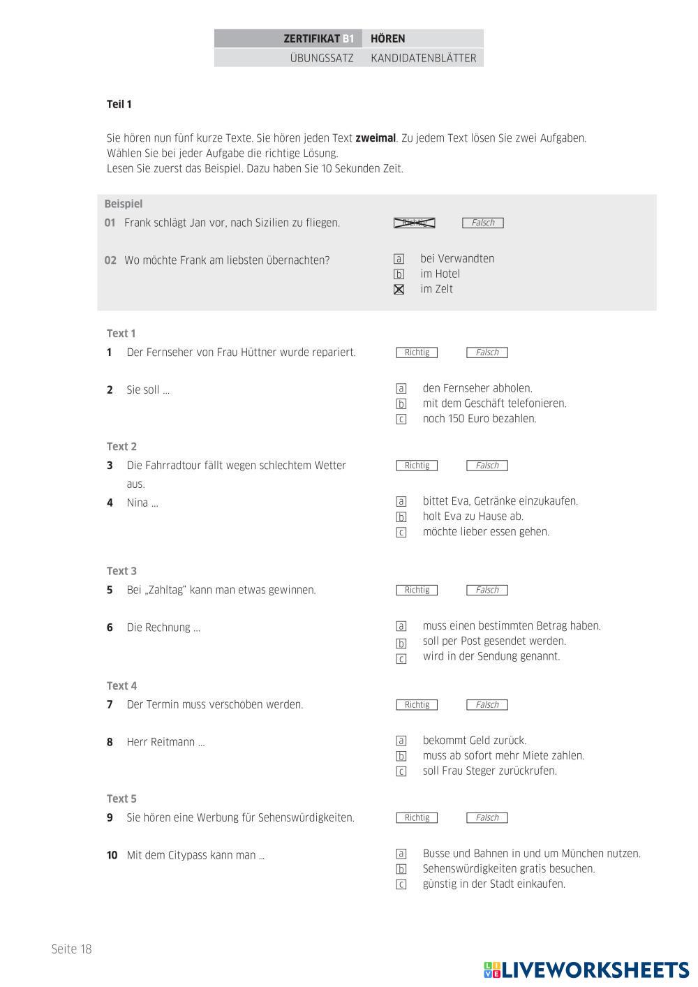 Lesen Sie jeweils zuerst die Aufgaben und hören Sie dann den Text dazu.