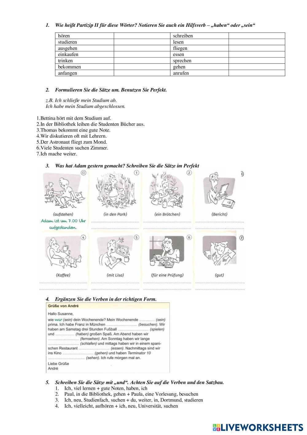 Created by 15299 ESL German A1 Vocabulary German Author's Instructions Gestern und heute My Google Classroom Courses × 0 classes selected (0 students total) Quick Access Select all classes (0 classes) All Classes Loading courses... Cancel Share Share to selected Course __COURSE_NAME__ __STUDENT_NAME__ (__STUDENT_EMAIL__) Abschlusstest K6 Download Worksheet Validation Check my answers Emails my answers to my teacher Full name Group/level School subject Teacher's email or key code Close Submit Validating worksheet... (12) Your answers have been sent to your teacher. Good luck! OK We encountered an error submitting your answers. Please try again. OK Advertisement | Go Ad Free Created by 15299 ESL German A1 Vocabulary German Author's Instructions Gestern und heute Explore Worksheets Abschlusstest K7 ESL A1 Abschlusstest K7 Vocabulary - ESL Machen Sie den Test Maximal A1 Lektion ESL A1 Maximal A1 Lektion Vocabulary - ESL Ergänze die fehlenden Wörter in jeder Übung. Ostern Wortschatz ESL A1 Ostern Wortschatz Vocabulary - ESL Schreibe die Nummer! ein/eine x kein/keine ESL A1 ein/eine x kein/keine Vocabulary - ESL Escreva a palavra apropriada nas lacunas (ein, eine, kein, keine)
