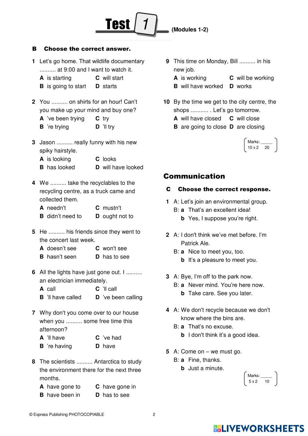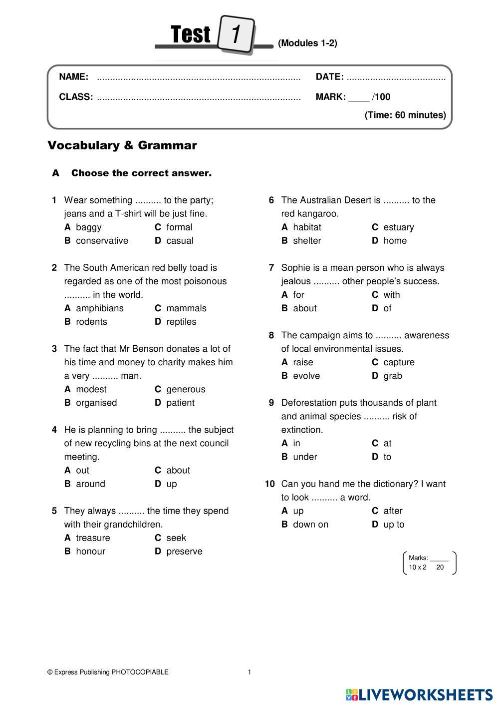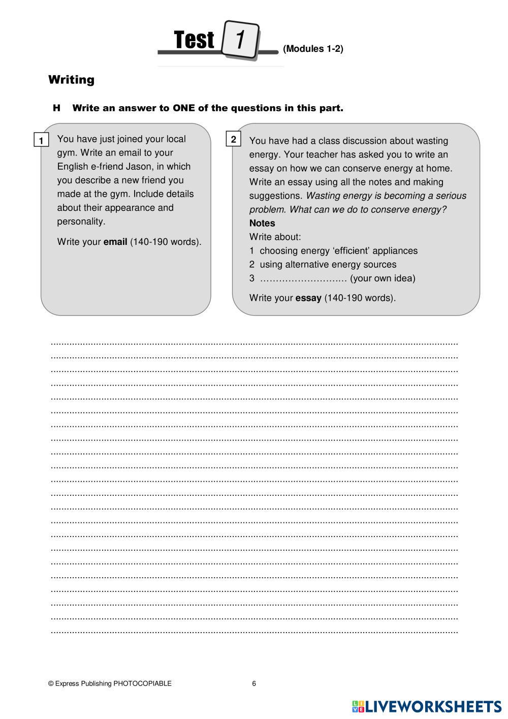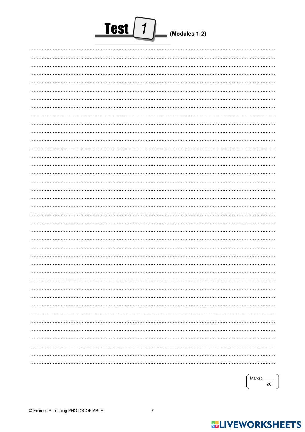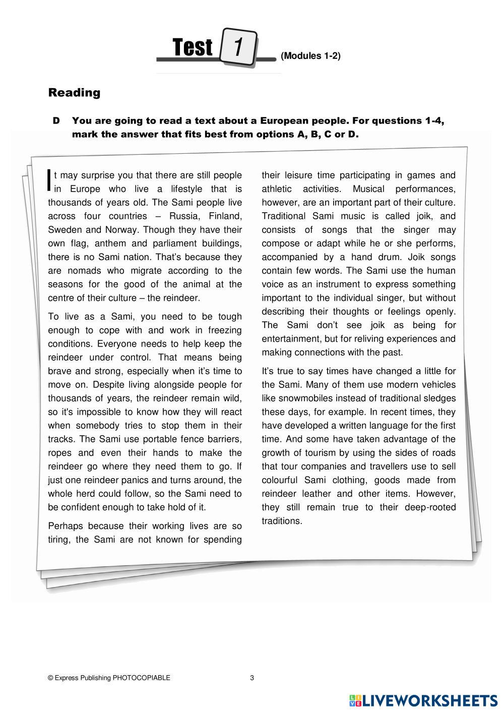 Created byMaria G ESL English B2 Reading Greek (modern) Author's Instructions Choose the correct item My Google Classroom Courses × 0 classes selected (0 students total) Quick Access Select all classes (0 classes) All Classes Loading courses... Cancel Share Share to selected Course __COURSE_NAME__ __STUDENT_NAME__ (__STUDENT_EMAIL__) On Screen B2 - Test 1 Download Worksheet Validation Check my answers Emails my answers to my teacher Full name Group/level School subject Teacher's email or key code Close Submit Validating worksheet... (12) Your answers have been sent to your teacher. Good luck! OK We encountered an error submitting your answers. Please try again. OK Advertisement | Go Ad Free Created byMaria G ESL English B2 Reading Greek (modern) Author's Instructions Choose the correct item Explore Worksheets Why did they call you that? ESL B2 Why did they call you that? Reading - ESL Follow the istructions. fill in the blank ESL B2 fill in the blank Reading - ESL Do it B2 W6 READING - ART ESL B2 B2 W6 READING - ART Reading - ESL Choose B2 W6 READING - FURNITURE ESL B2 B2 W6 READING - FURNITURE Reading - ESL Choose