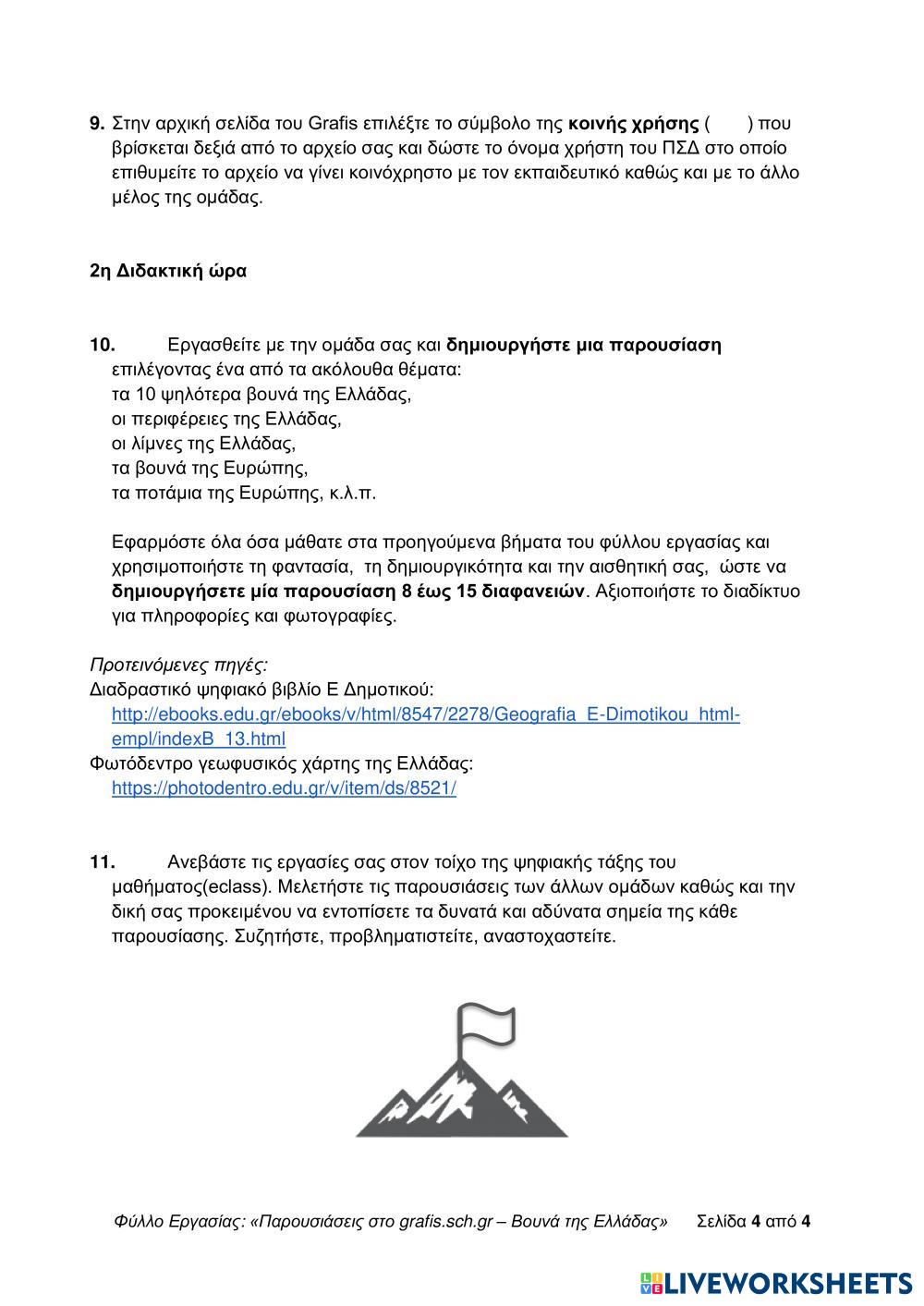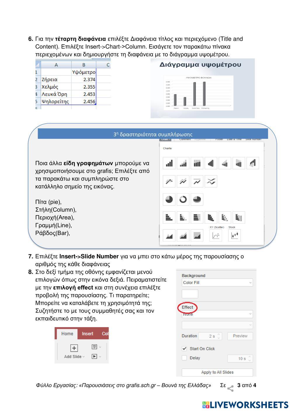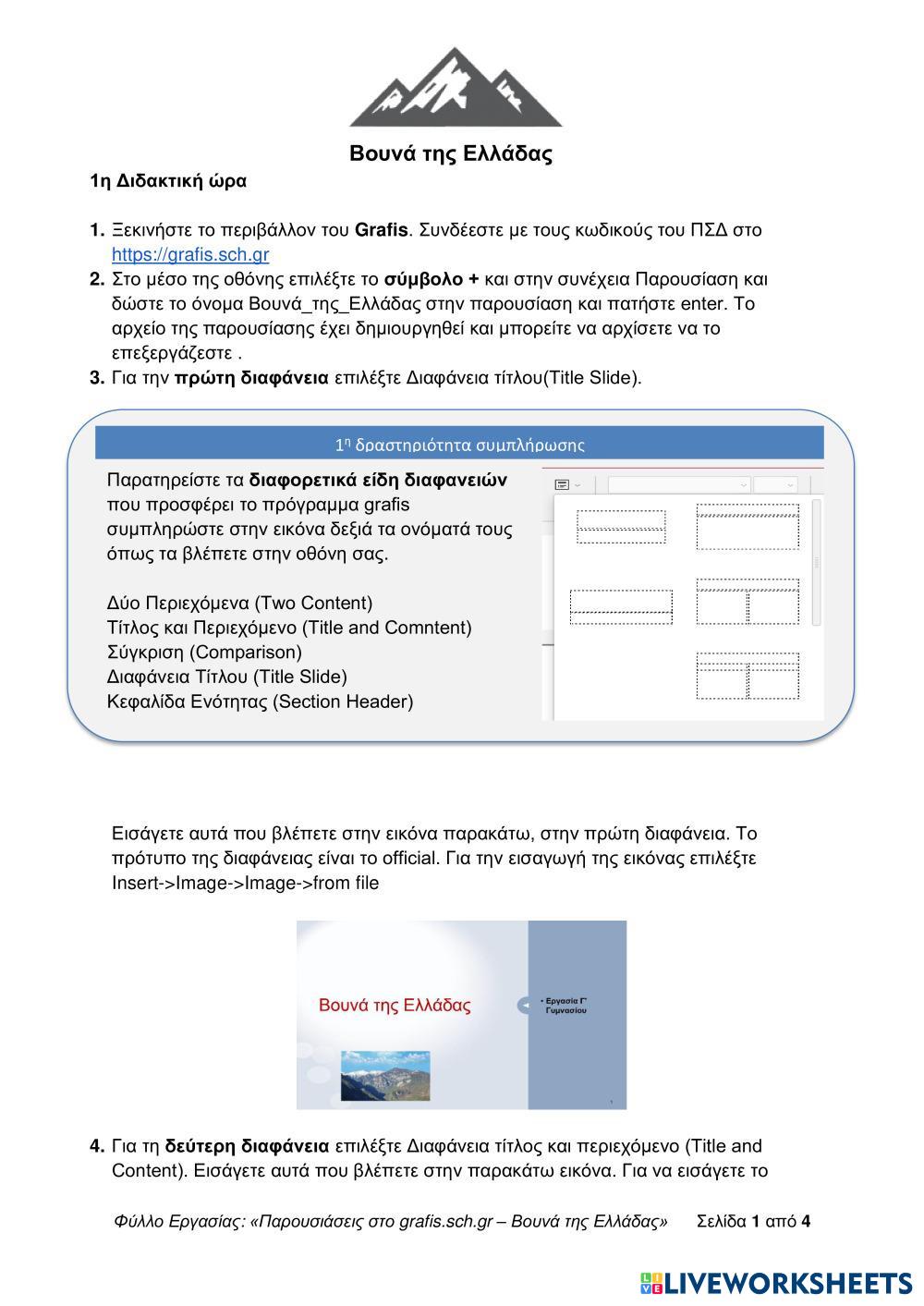 Φύλλο εργασίας για εισαγωγή στη χρήση των παρουσιάσεων του grafis.sch.gr