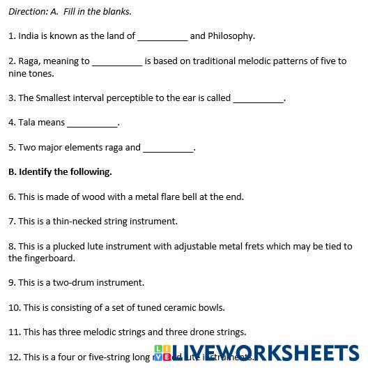 Created byCharmine Billones ARTS MAPEH Age 10+ level: * English Author's Instructions My Google Classroom Courses × 0 classes selected (0 students total) Quick Access Select all classes (0 classes) All Classes Loading courses... Cancel Share Share to selected Course __COURSE_NAME__ __STUDENT_NAME__ (__STUDENT_EMAIL__) Rec # 1 MUSIC Download Worksheet Validation Check my answers Emails my answers to my teacher Full name Group/level School subject Teacher's email or key code Close Submit Validating worksheet... (12) Your answers have been sent to your teacher. Good luck! OK We encountered an error submitting your answers. Please try again. OK Advertisement | Go Ad Free Created byCharmine Billones ARTS MAPEH Age 10+ level: * English Author's Instructions