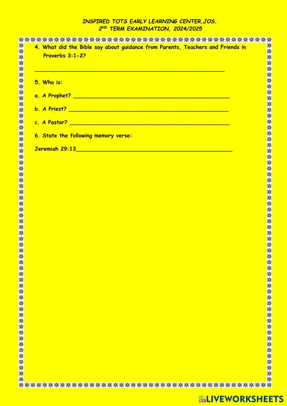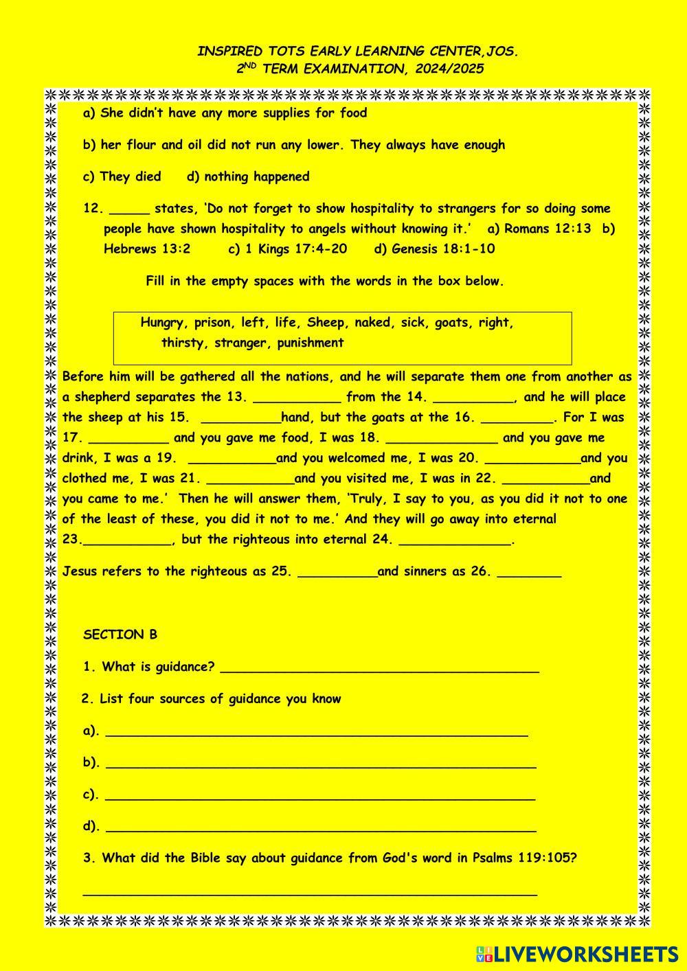 Created byMichael O. Ameh Bible Knowledge Multiple Choice Age 7-12 level: 3rd grade English Author's Instructions My Google Classroom Courses × 0 classes selected (0 students total) Quick Access Select all classes (0 classes) All Classes Loading courses... Cancel Share Share to selected Course __COURSE_NAME__ __STUDENT_NAME__ (__STUDENT_EMAIL__) INSPIRED TOTS EARLY LEARNING CENTER,JOS Download Worksheet Validation Check my answers Emails my answers to my teacher Full name Group/level School subject Teacher's email or key code Close Submit Validating worksheet... (12) Your answers have been sent to your teacher. Good luck! OK We encountered an error submitting your answers. Please try again. OK Advertisement | Go Ad Free Created byMichael O. Ameh Bible Knowledge Multiple Choice Age 7-12 level: 3rd grade English Author's Instructions