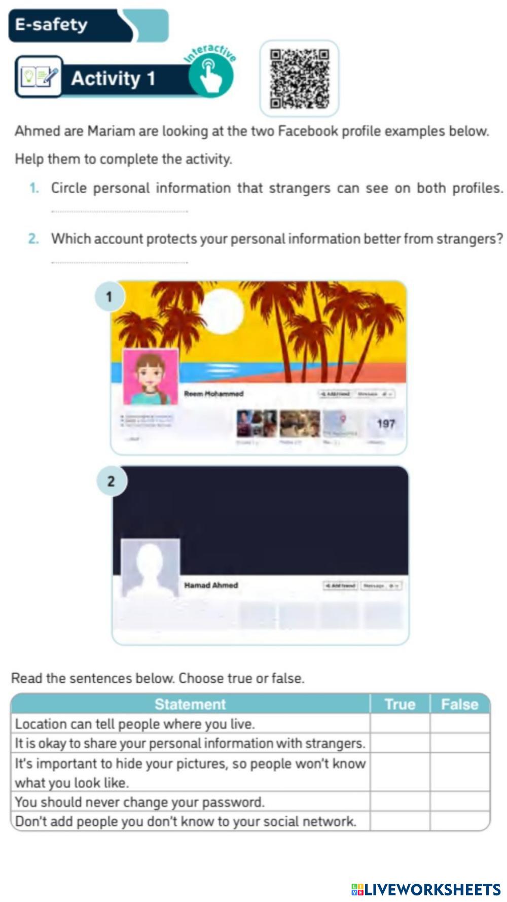 Created by IrfanSir CCDI - G5 E-Safety Age 10-14 level: Moderate English Author's Instructions My Google Classroom Courses × 0 classes selected (0 students total) Quick Access Select all classes (0 classes) All Classes Loading courses... Cancel Share Share to selected Course __COURSE_NAME__ __STUDENT_NAME__ (__STUDENT_EMAIL__) T3-G5-U1-A1 Download Worksheet Validation Check my answers Emails my answers to my teacher Full name Group/level School subject Teacher's email or key code Close Submit Validating worksheet... (12) Your answers have been sent to your teacher. Good luck! OK We encountered an error submitting your answers. Please try again. OK Advertisement | Go Ad Free Created by IrfanSir CCDI - G5 E-Safety Age 10-14 level: Moderate English Author's Instructions
