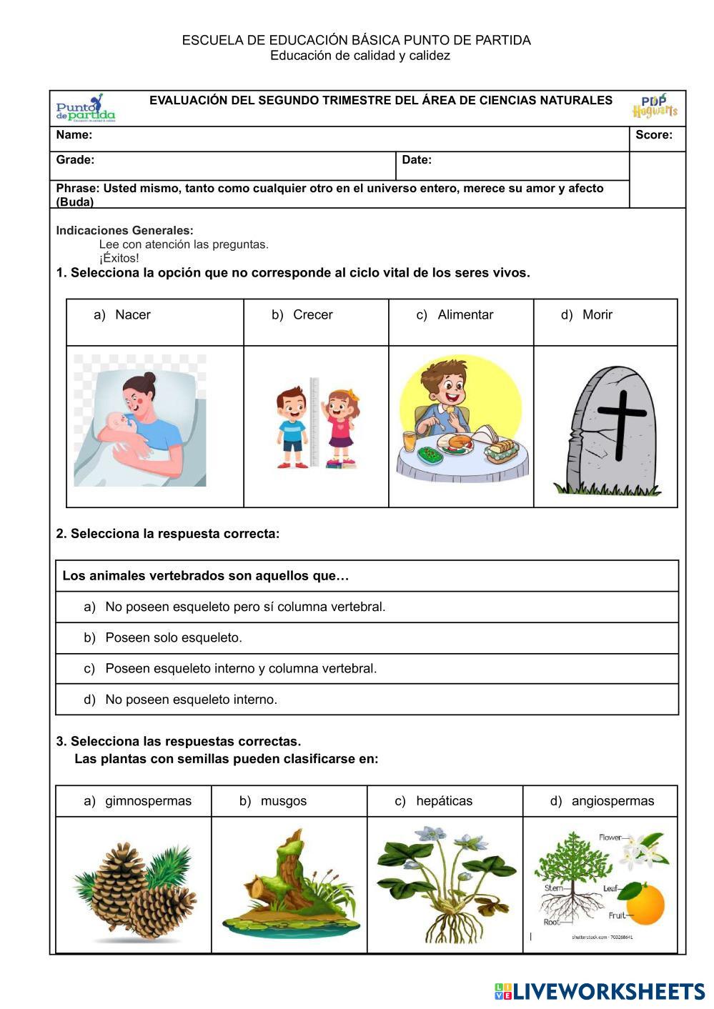 Created byAngel Fernando Guamo Capa Ciencias Naturales Plantas Age 6-13 level: 4th English Author's Instructions contenidos de cuarto grado My Google Classroom Courses × 0 classes selected (0 students total) Quick Access Select all classes (0 classes) All Classes Loading courses... Cancel Share Share to selected Course __COURSE_NAME__ __STUDENT_NAME__ (__STUDENT_EMAIL__) EVALUACIÓN CIENCIAS NATURALES Download Worksheet Validation Check my answers Emails my answers to my teacher Full name Group/level School subject Teacher's email or key code Close Submit Validating worksheet... (12) Your answers have been sent to your teacher. Good luck! OK We encountered an error submitting your answers. Please try again. OK Advertisement | Go Ad Free Created byAngel Fernando Guamo Capa Ciencias Naturales Plantas Age 6-13 level: 4th English Author's Instructions contenidos de cuarto grado