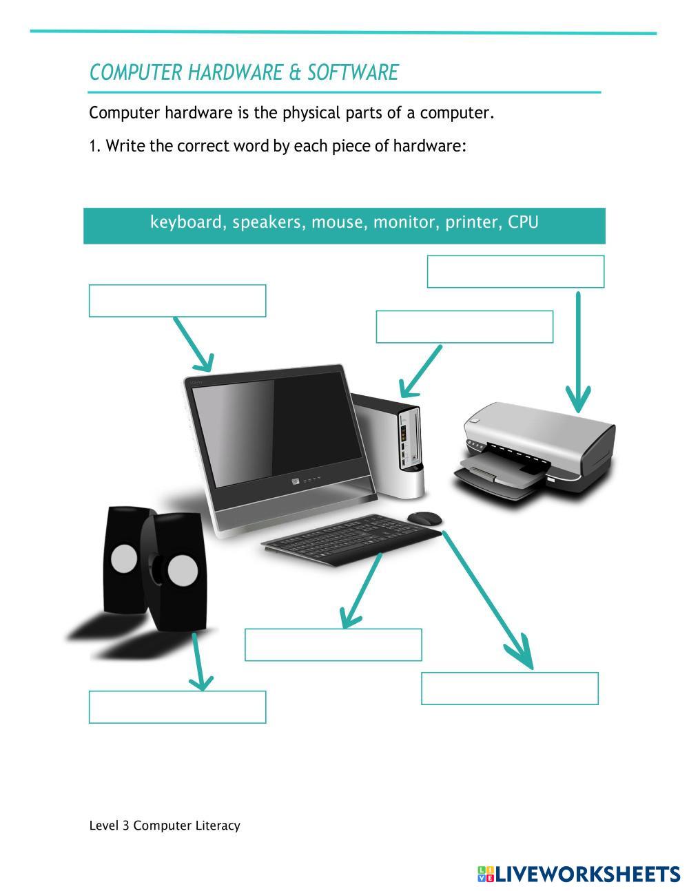 Created by mckenzco Computer Literacy Computer basics Age 14+ level: 3 English Author's Instructions My Google Classroom Courses × 0 classes selected (0 students total) Quick Access Select all classes (0 classes) All Classes Loading courses... Cancel Share Share to selected Course __COURSE_NAME__ __STUDENT_NAME__ (__STUDENT_EMAIL__) COMPUTER SOFTWARE AND HARDWARE Download Worksheet Validation Check my answers Emails my answers to my teacher Full name Group/level School subject Teacher's email or key code Close Submit Validating worksheet... (12) Your answers have been sent to your teacher. Good luck! OK We encountered an error submitting your answers. Please try again. OK Advertisement | Go Ad Free Created by mckenzco Computer Literacy Computer basics Age 14+ level: 3 English Author's Instructions