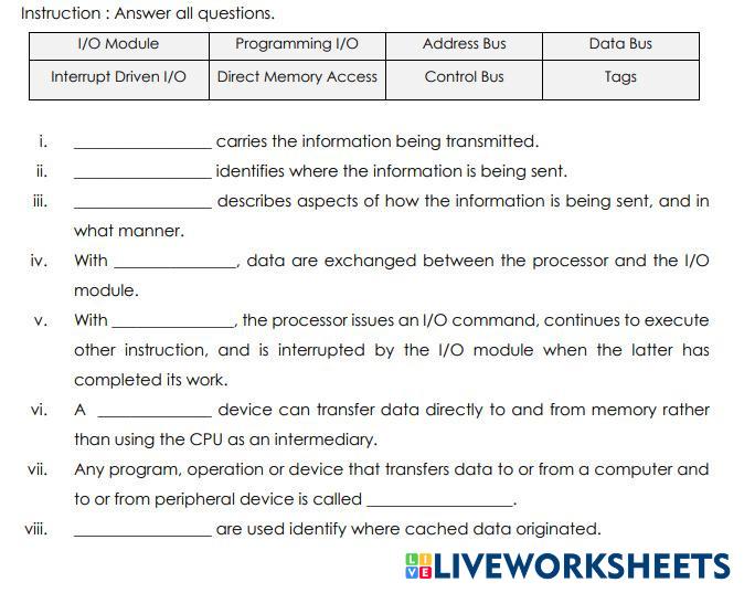Created byArfidzul Rajit Noor Computer System Parts of computer Age 18+ level: High Education English Author's Instructions My Google Classroom Courses × 0 classes selected (0 students total) Quick Access Select all classes (0 classes) All Classes Loading courses... Cancel Share Share to selected Course __COURSE_NAME__ __STUDENT_NAME__ (__STUDENT_EMAIL__) CA Activity 1A Download Worksheet Validation Check my answers Emails my answers to my teacher Full name Group/level School subject Teacher's email or key code Close Submit Validating worksheet... (12) Your answers have been sent to your teacher. Good luck! OK We encountered an error submitting your answers. Please try again. OK Advertisement | Go Ad Free Created byArfidzul Rajit Noor Computer System Parts of computer Age 18+ level: High Education English Author's Instructions