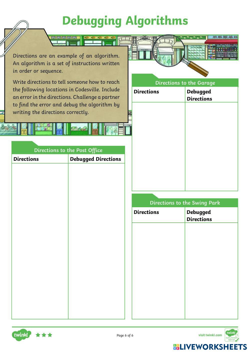 Created byJam Sale Computer Algorithms Age 12-16 level: 8 English Author's Instructions My Google Classroom Courses × 0 classes selected (0 students total) Quick Access Select all classes (0 classes) All Classes Loading courses... Cancel Share Share to selected Course __COURSE_NAME__ __STUDENT_NAME__ (__STUDENT_EMAIL__) Algorithms Download Worksheet Validation Check my answers Emails my answers to my teacher Full name Group/level School subject Teacher's email or key code Close Submit Validating worksheet... (12) Your answers have been sent to your teacher. Good luck! OK We encountered an error submitting your answers. Please try again. OK Advertisement | Go Ad Free Created byJam Sale Computer Algorithms Age 12-16 level: 8 English Author's Instructions