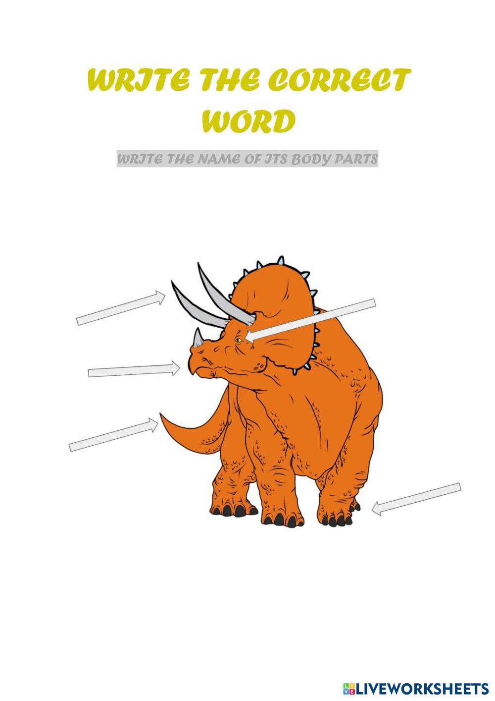 Students will have to name the Triceratop's body parts writing the names at the end of the arrows.