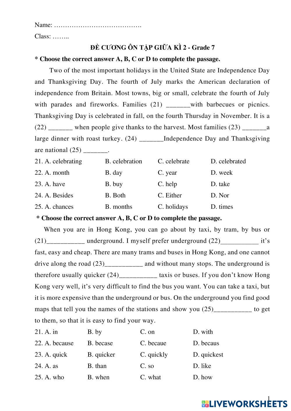 Created by Lilybui E7.Test giữa học kỳ 2.2025.2 E7.Test giữa học kỳ 2.2025.2 Age 11-15 level: 7 English Author's Instructions My Google Classroom Courses × 0 classes selected (0 students total) Quick Access Select all classes (0 classes) All Classes Loading courses... Cancel Share Share to selected Course __COURSE_NAME__ __STUDENT_NAME__ (__STUDENT_EMAIL__) E7.Test giữa học kỳ 2.2025.2 Download Worksheet Validation Check my answers Emails my answers to my teacher Full name Group/level School subject Teacher's email or key code Close Submit Validating worksheet... (12) Your answers have been sent to your teacher. Good luck! OK We encountered an error submitting your answers. Please try again. OK Advertisement | Go Ad Free Created by Lilybui E7.Test giữa học kỳ 2.2025.2 E7.Test giữa học kỳ 2.2025.2 Age 11-15 level: 7 English Author's Instructions