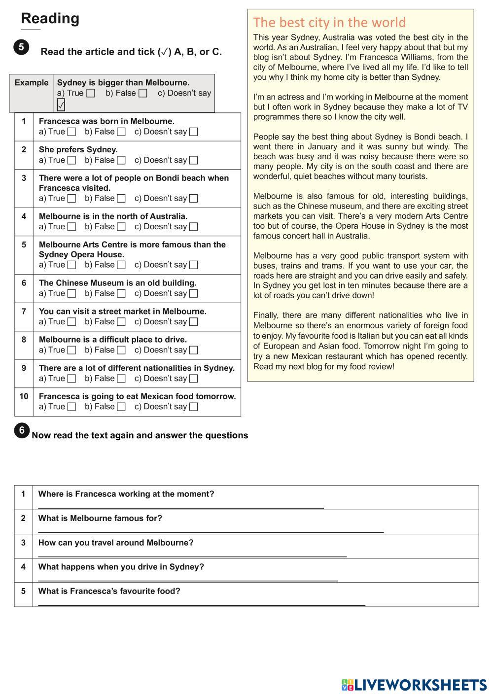 Created byDiego Zamora English A2 grammar Age 15+ level: A2 English Author's Instructions My Google Classroom Courses × 0 classes selected (0 students total) Quick Access Select all classes (0 classes) All Classes Loading courses... Cancel Share Share to selected Course __COURSE_NAME__ __STUDENT_NAME__ (__STUDENT_EMAIL__) Thinkers Final test Download Worksheet Validation Check my answers Emails my answers to my teacher Full name Group/level School subject Teacher's email or key code Close Submit Validating worksheet... (12) Your answers have been sent to your teacher. Good luck! OK We encountered an error submitting your answers. Please try again. OK Advertisement | Go Ad Free Created byDiego Zamora English A2 grammar Age 15+ level: A2 English Author's Instructions