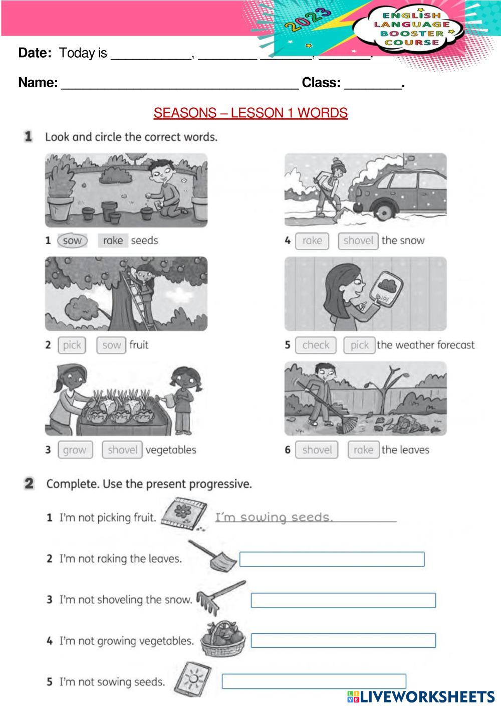 Created by MariAnte English as a Foreign Language (EFL) Vocabulary Age 11-15 level: 7th English Author's Instructions My Google Classroom Courses × 0 classes selected (0 students total) Quick Access Select all classes (0 classes) All Classes Loading courses... Cancel Share Share to selected Course __COURSE_NAME__ __STUDENT_NAME__ (__STUDENT_EMAIL__) unit 2 seasons - words Download Worksheet Validation Check my answers Emails my answers to my teacher Full name Group/level School subject Teacher's email or key code Close Submit Validating worksheet... (12) Your answers have been sent to your teacher. Good luck! OK We encountered an error submitting your answers. Please try again. OK Advertisement | Go Ad Free Created by MariAnte English as a Foreign Language (EFL) Vocabulary Age 11-15 level: 7th English Author's Instructions