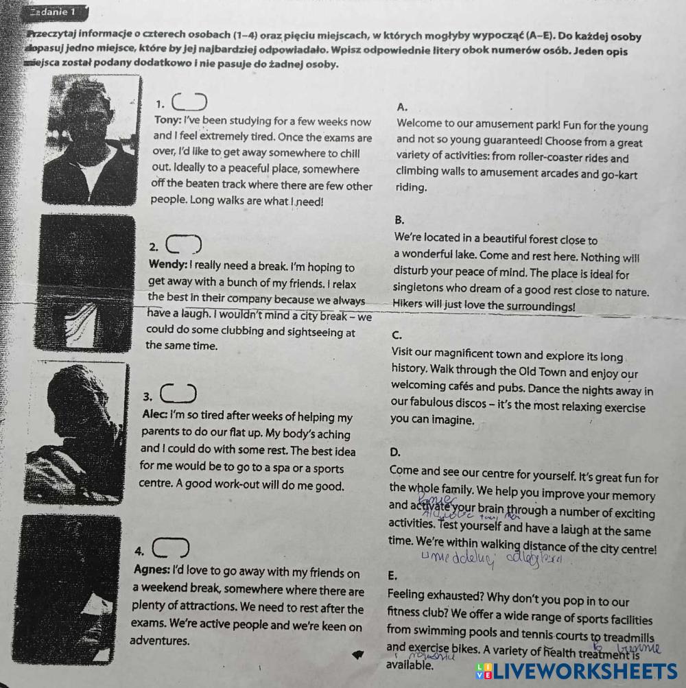 Created by xxmelka English as a foreign language English egzamin osmoklasisty Age 13-17 level: A2 English Author's Instructions My Google Classroom Courses × 0 classes selected (0 students total) Quick Access Select all classes (0 classes) All Classes Loading courses... Cancel Share Share to selected Course __COURSE_NAME__ __STUDENT_NAME__ (__STUDENT_EMAIL__) Worksheet egzamin 8 Download Worksheet Validation Check my answers Emails my answers to my teacher Full name Group/level School subject Teacher's email or key code Close Submit Validating worksheet... (12) Your answers have been sent to your teacher. Good luck! OK We encountered an error submitting your answers. Please try again. OK Advertisement | Go Ad Free Created by xxmelka English as a foreign language English egzamin osmoklasisty Age 13-17 level: A2 English Author's Instructions