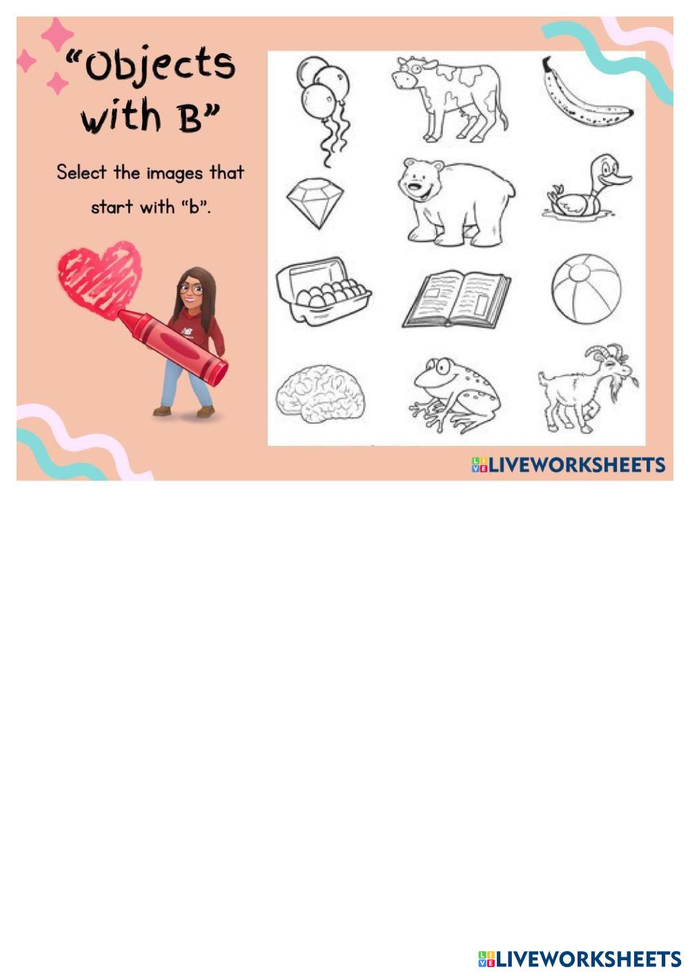 Created by afra2 English Language Early Learning Pre-K Alphabet English Author's Instructions select the objects that start with B My Google Classroom Courses × 0 classes selected (0 students total) Quick Access Select all classes (0 classes) All Classes Loading courses... Cancel Share Share to selected Course __COURSE_NAME__ __STUDENT_NAME__ (__STUDENT_EMAIL__) Objects with B Download Worksheet Validation Check my answers Emails my answers to my teacher Full name Group/level School subject Teacher's email or key code Close Submit Validating worksheet... (12) Your answers have been sent to your teacher. Good luck! OK We encountered an error submitting your answers. Please try again. OK Advertisement | Go Ad Free Created by afra2 English Language Early Learning Pre-K Alphabet English Author's Instructions select the objects that start with B Explore Worksheets Sorting Letters English Language Pre-K Sorting Letters Alphabet - English Language Sort the letter in the correct box Sorting Letters English Language Pre-K Sorting Letters Alphabet - English Language Sort the letter in the correct order Sorting Letters English Language Pre-K Sorting Letters Alphabet - English Language Sort the letters in the correct box Phòng tránh bị thương do các vật sắc nhọn (tiết 1) English Language Pre-K Phòng tránh bị thương do các vật sắc nhọn (tiết 1) Alphabet - English Language Ghép nối