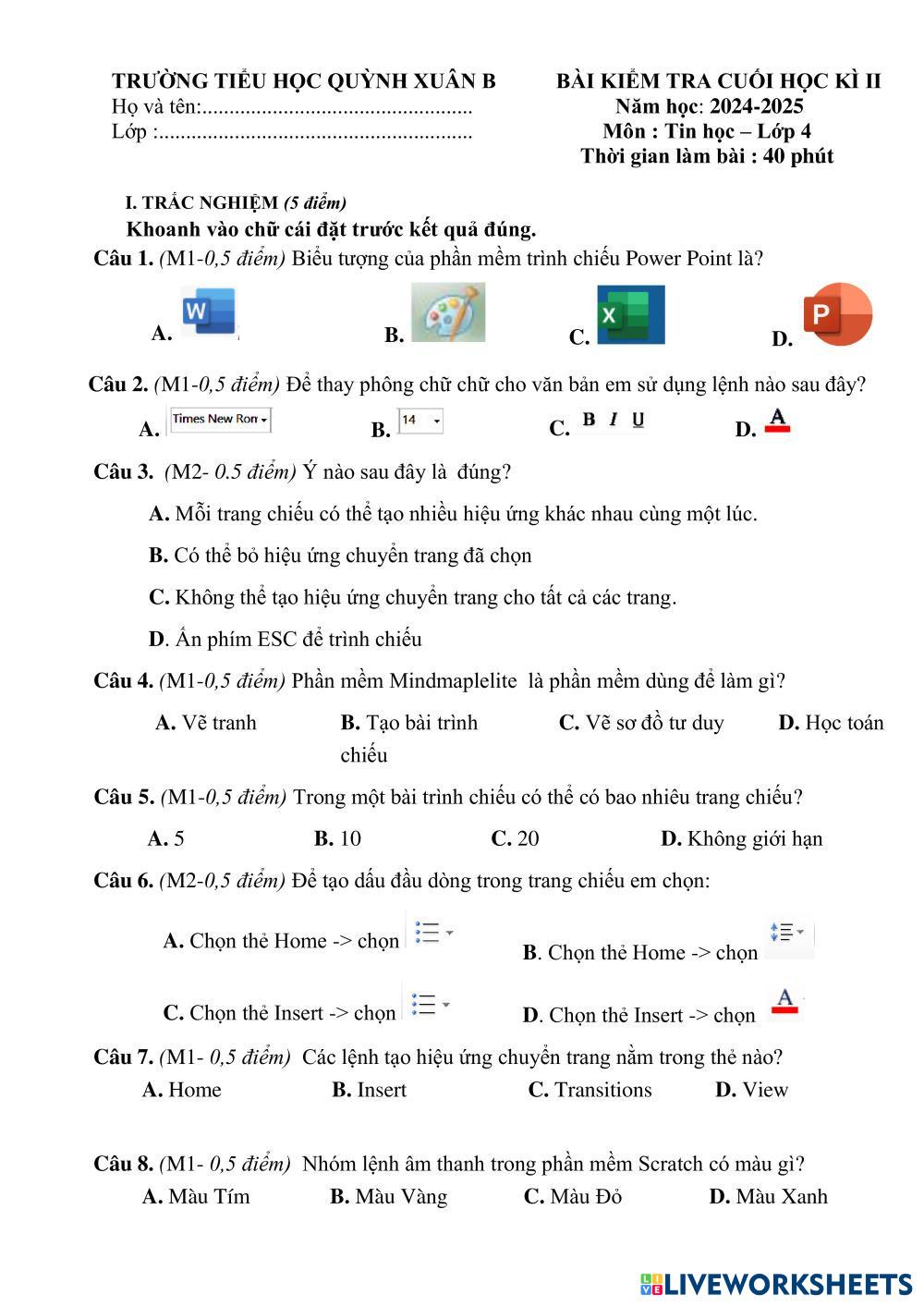 đề ktra học kì 2 môn tin học