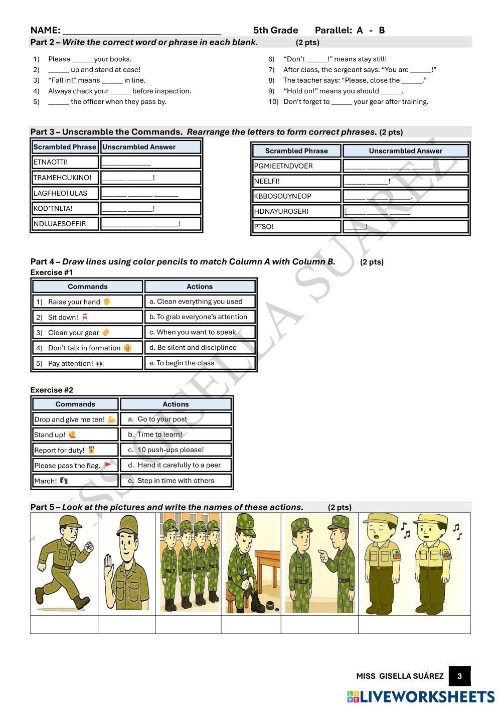 Solve the exercises related to the Imperatives and Military and School Commands