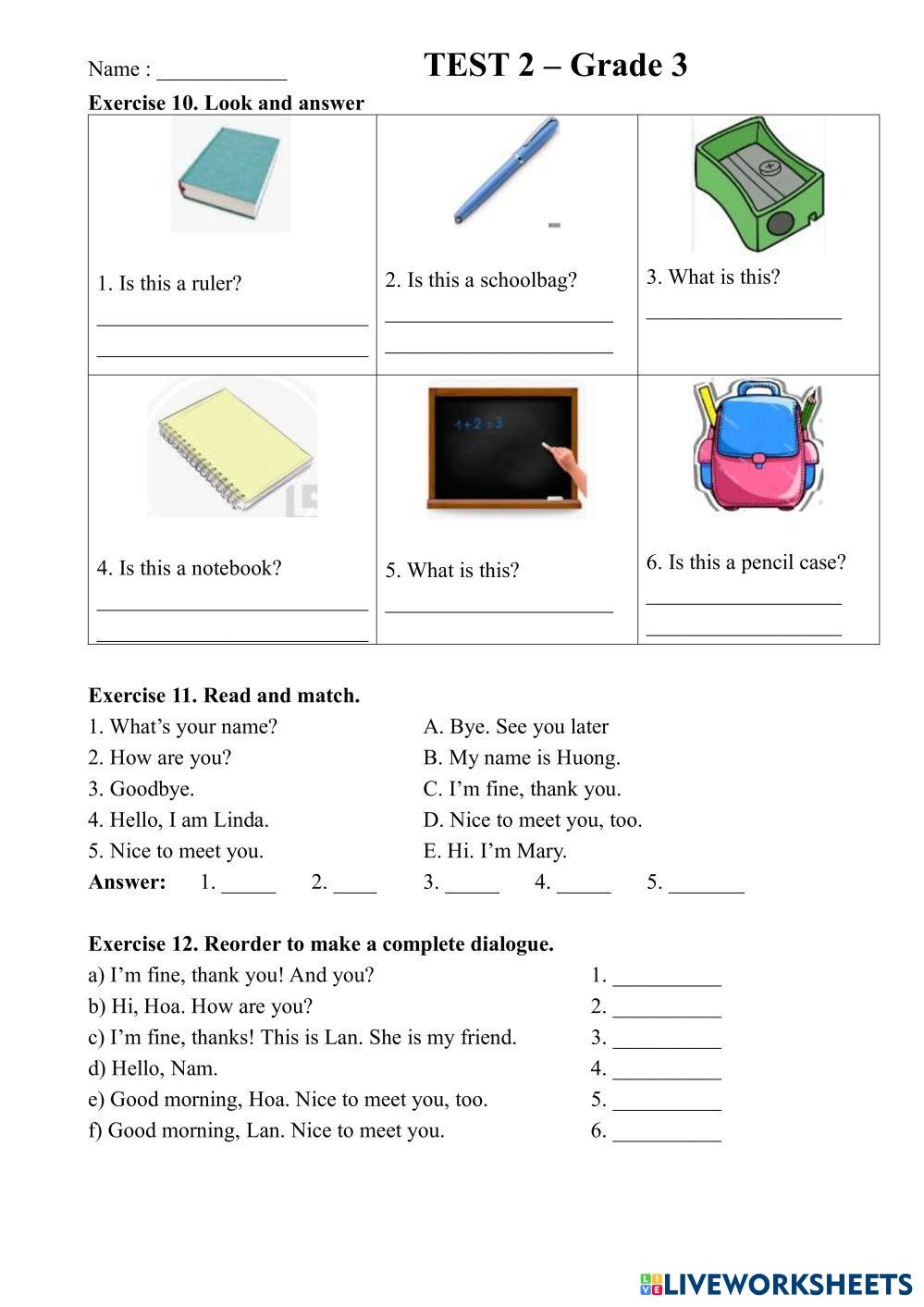 Created by Chettiet English Language Middle School 7th grade Grammar English Author's Instructions Bác Huyền My Google Classroom Courses × 0 classes selected (0 students total) Quick Access Select all classes (0 classes) All Classes Loading courses... Cancel Share Share to selected Course __COURSE_NAME__ __STUDENT_NAME__ (__STUDENT_EMAIL__) IOE_3 - TEST 2 Download Worksheet Validation Check my answers Emails my answers to my teacher Full name Group/level School subject Teacher's email or key code Close Submit Validating worksheet... (12) Your answers have been sent to your teacher. Good luck! OK We encountered an error submitting your answers. Please try again. OK Advertisement | Go Ad Free Created by Chettiet English Language Middle School 7th grade Grammar English Author's Instructions Bác Huyền Explore Worksheets M.1_Exercise 2_Daily Routine English Language 7th grade M.1_Exercise 2_Daily Routine Grammar - English Language Do exercise 1.Complete the expressions about daily routinesComplete the expressions about daily routines 2.Rewrite the sentences with the adverbs of frequency in parentheses. 3.Order the words to make questions. The colors English Language 7th grade The colors Grammar - English Language Answer the worksheets according to the instructions on each one. LKPD Asking Ekspresion English Language 7th grade LKPD Asking Ekspresion Grammar - English Language Kerjakan LKPD Berikut ini! GRADE 7.9 English Language 7th grade GRADE 7.9 Grammar - English Language Do exercise