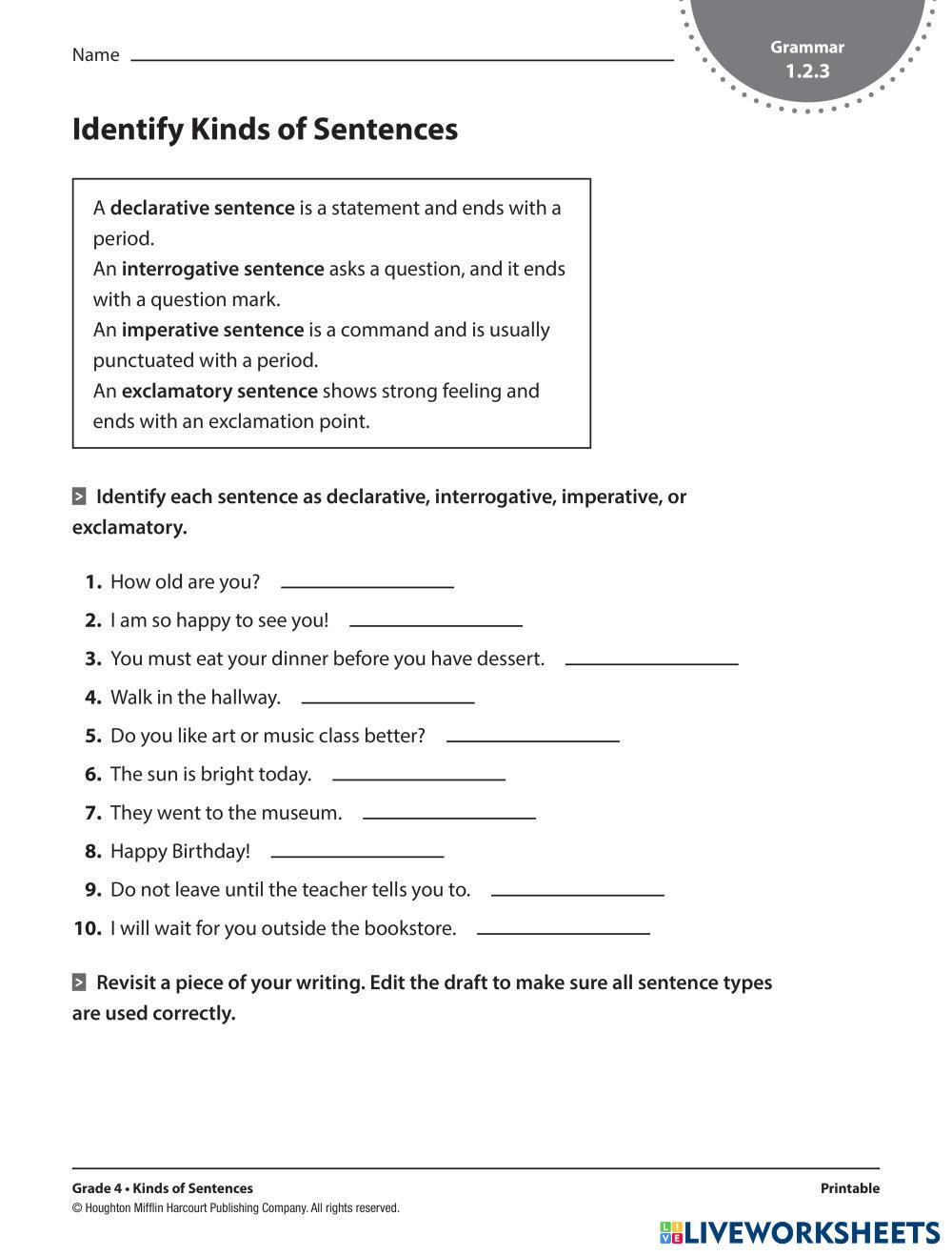Identify each sentence as declarative, interrogative, imperative, or exclamatory.
