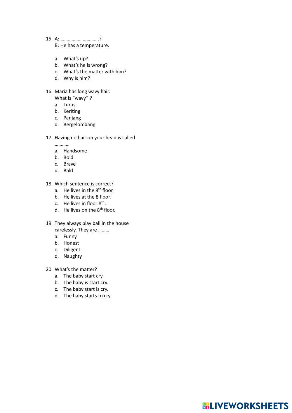 choose the correct answers (just write a, b, c, or d)