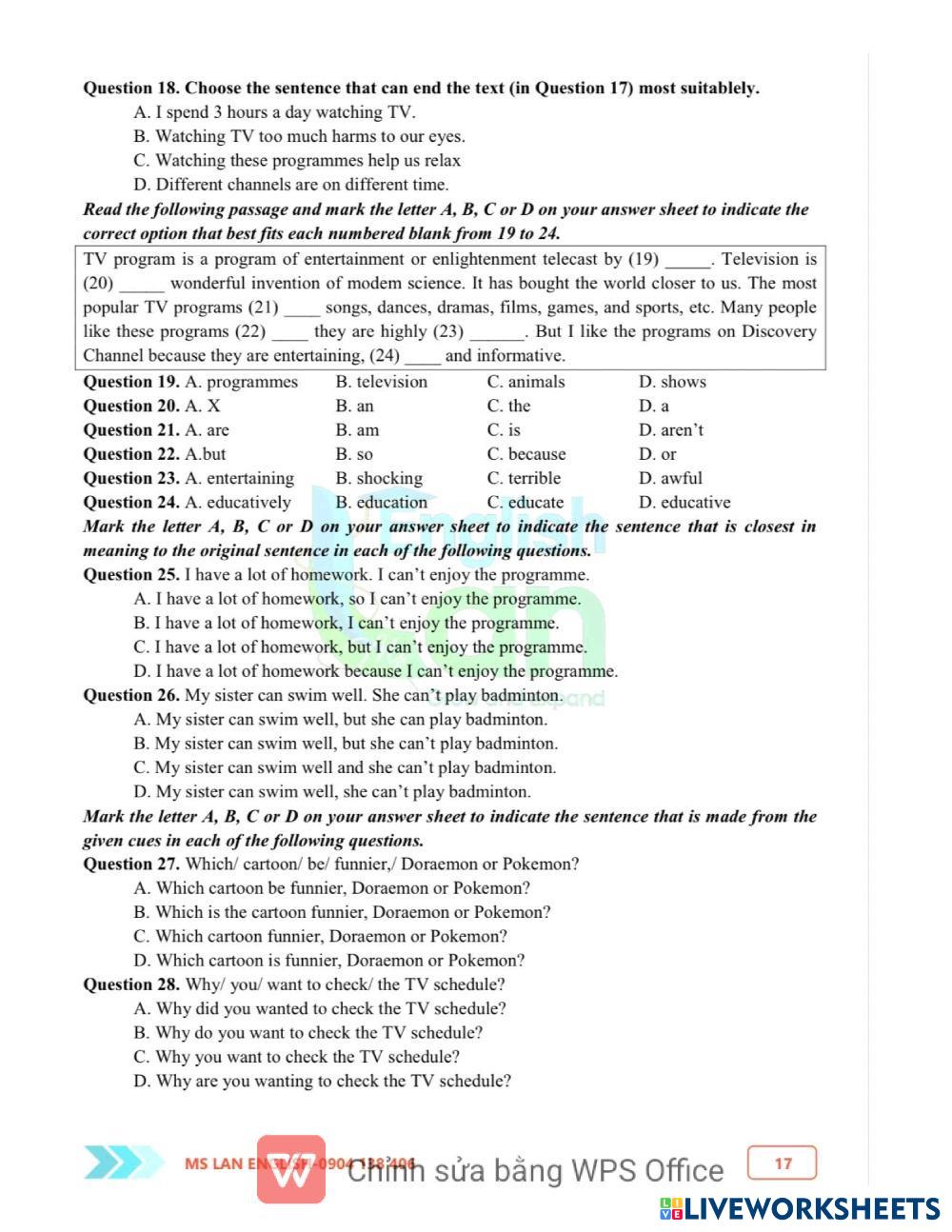Unit 7 - Test 2 - Grade 6 kỳ 2