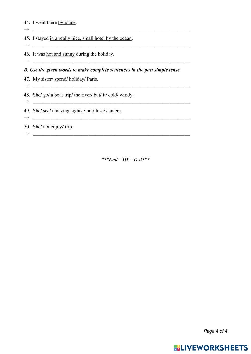 Created byNGUYEN THI BAO HA English Language Middle School 6th grade Grammar English Author's Instructions UNIT 5 My Google Classroom Courses × 0 classes selected (0 students total) Quick Access Select all classes (0 classes) All Classes Loading courses... Cancel Share Share to selected Course __COURSE_NAME__ __STUDENT_NAME__ (__STUDENT_EMAIL__) RIGHT ON 6_UNIT 5 Download Worksheet Validation Check my answers Emails my answers to my teacher Full name Group/level School subject Teacher's email or key code Close Submit Validating worksheet... (12) Your answers have been sent to your teacher. Good luck! OK We encountered an error submitting your answers. Please try again. OK Advertisement | Go Ad Free Created byNGUYEN THI BAO HA English Language Middle School 6th grade Grammar English Author's Instructions UNIT 5 Explore Worksheets 6th Grade - Welcome Unit Test English Language 6th grade 6th Grade - Welcome Unit Test Grammar - English Language Finish the exercises. PRESENT SIMPLE or PAST SIMPLE English Language 6th grade PRESENT SIMPLE or PAST SIMPLE Grammar - English Language PRESENT SIMPLE or PAST SIMPLE RO7_ MID TERM TEST 2 English Language 6th grade RO7_ MID TERM TEST 2 Grammar - English Language UNIT 5 Review Smartstart 6.1 English Language 6th grade Review Smartstart 6.1 Grammar - English Language HW
