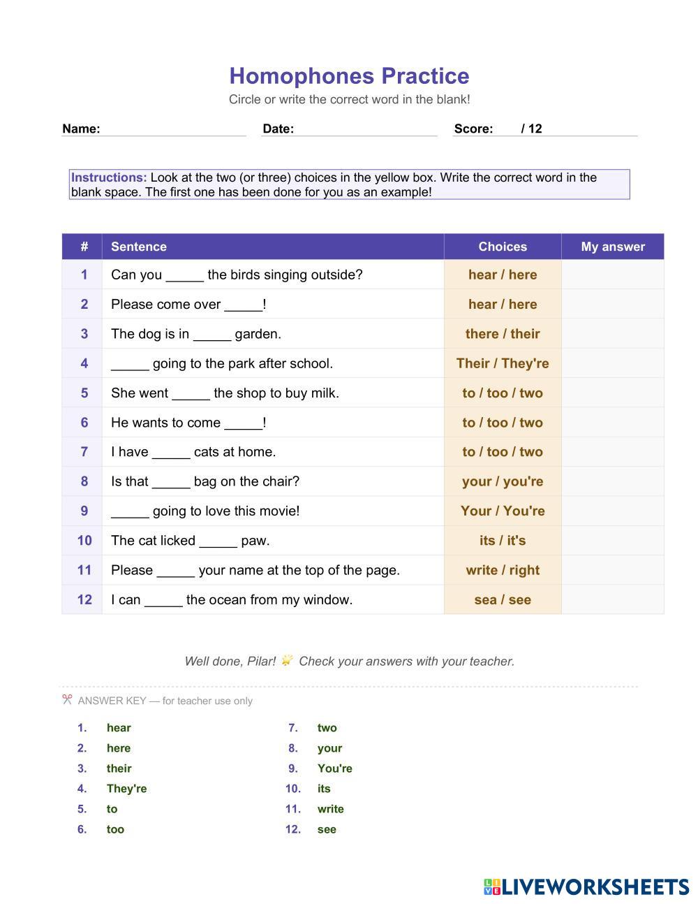Homophones Practice