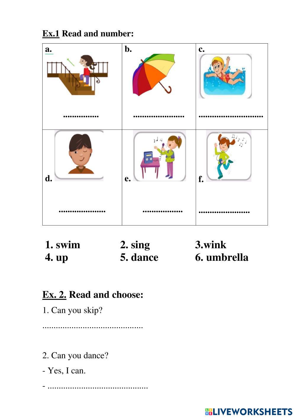 Created byLê Thị Dung English Language Elementary 2nd grade Grammar English Author's Instructions Do carefully. My Google Classroom Courses × 0 classes selected (0 students total) Quick Access Select all classes (0 classes) All Classes Loading courses... Cancel Share Share to selected Course __COURSE_NAME__ __STUDENT_NAME__ (__STUDENT_EMAIL__) unit 7. starter Download Worksheet Validation Check my answers Emails my answers to my teacher Full name Group/level School subject Teacher's email or key code Close Submit Validating worksheet... (12) Your answers have been sent to your teacher. Good luck! OK We encountered an error submitting your answers. Please try again. OK Advertisement | Go Ad Free Created byLê Thị Dung English Language Elementary 2nd grade Grammar English Author's Instructions Do carefully. Explore Worksheets Unit 11 English Language 2nd grade Unit 11 Grammar - English Language , Everybody Up 1 - Unit 1 - Lesson 1 English Language 2nd grade Everybody Up 1 - Unit 1 - Lesson 1 Grammar - English Language I. Drag and Drop the correct picture with a/an II. Choose the correct answer English English Language 2nd grade English Grammar - English Language .............................................. Prepositions WB English Language 2nd grade Prepositions WB Grammar - English Language Read the instructions and do the tasks: