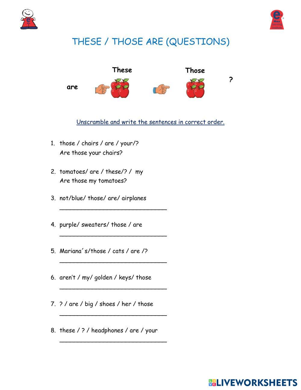 Created by nancybautista1 English Language Middle School 6th grade Grammar English Author's Instructions complete the activities My Google Classroom Courses × 0 classes selected (0 students total) Quick Access Select all classes (0 classes) All Classes Loading courses... Cancel Share Share to selected Course __COURSE_NAME__ __STUDENT_NAME__ (__STUDENT_EMAIL__) this that these those there is Download Worksheet Validation Check my answers Emails my answers to my teacher Full name Group/level School subject Teacher's email or key code Close Submit Validating worksheet... (12) Your answers have been sent to your teacher. Good luck! OK We encountered an error submitting your answers. Please try again. OK Advertisement | Go Ad Free Created by nancybautista1 English Language Middle School 6th grade Grammar English Author's Instructions complete the activities Explore Worksheets Ordinal numbers English Language 6th grade Ordinal numbers Grammar - English Language complete the exercises UOEB2 U4 English Language 6th grade UOEB2 U4 Grammar - English Language Fill in the blanks Cardinal Numbers English Language 6th grade Cardinal Numbers Grammar - English Language Complete the exercises Online_Viet Teacher_S6_W29_U8_Grammar Revision & Supplementary Grammar English Language 6th grade Online_Viet Teacher_S6_W29_U8_Grammar Revision & Supplementary Grammar Grammar - English Language Online_Viet Teacher_S6_W29_U8_Grammar Revision & Supplementary Grammar