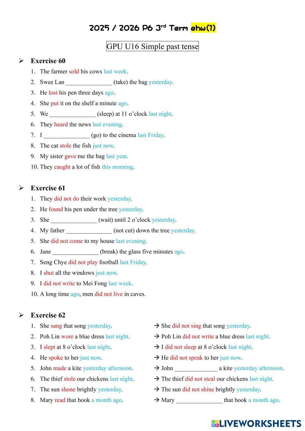 Created by wendylei English Language Middle School 6th grade Grammar English Author's Instructions Finish ALL the exercise. My Google Classroom Courses × 0 classes selected (0 students total) Quick Access Select all classes (0 classes) All Classes Loading courses... Cancel Share Share to selected Course __COURSE_NAME__ __STUDENT_NAME__ (__STUDENT_EMAIL__) 2025/2026 P6 3rd term_ehw(1)_GPU U16 U17 Download Worksheet Validation Check my answers Emails my answers to my teacher Full name Group/level School subject Teacher's email or key code Close Submit Validating worksheet... (12) Your answers have been sent to your teacher. Good luck! OK We encountered an error submitting your answers. Please try again. OK Advertisement | Go Ad Free Created by wendylei English Language Middle School 6th grade Grammar English Author's Instructions Finish ALL the exercise. Explore Worksheets PU5_quantifiers, modal verbs English Language 6th grade PU5_quantifiers, modal verbs Grammar - English Language Homework EU6- UNIT REVISION English Language 6th grade EU6- UNIT REVISION Grammar - English Language NP2 EU6- UNIT REVISION GoGetter 2 English Language 6th grade GoGetter 2 Grammar - English Language jobs, Past Simple Conditionals English Language 6th grade Conditionals Grammar - English Language Complete the exercises