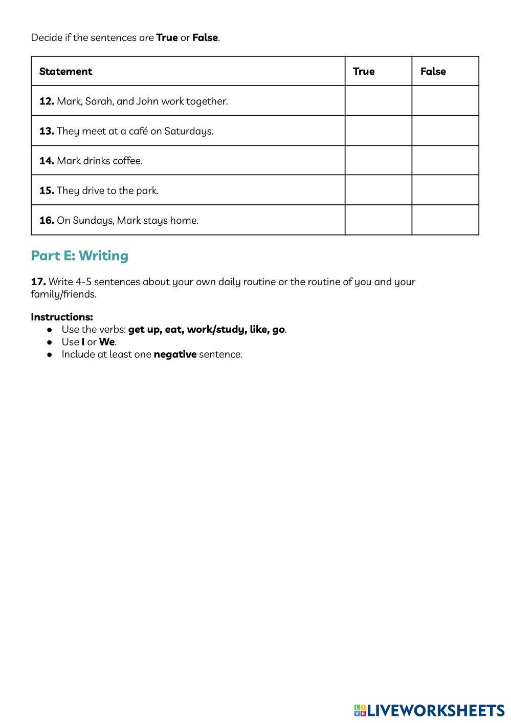 Created by cuentag English Language Middle School 8th grade Grammar English Author's Instructions Complete the following task My Google Classroom Courses × 0 classes selected (0 students total) Quick Access Select all classes (0 classes) All Classes Loading courses... Cancel Share Share to selected Course __COURSE_NAME__ __STUDENT_NAME__ (__STUDENT_EMAIL__) Simple present Download Worksheet Validation Check my answers Emails my answers to my teacher Full name Group/level School subject Teacher's email or key code Close Submit Validating worksheet... (12) Your answers have been sent to your teacher. Good luck! OK We encountered an error submitting your answers. Please try again. OK Advertisement | Go Ad Free Created by cuentag English Language Middle School 8th grade Grammar English Author's Instructions Complete the following task Explore Worksheets Exam unit 2 English Language 8th grade Exam unit 2 Grammar - English Language Read the intructions carefully. Online_Viet Teacher_S8_W30_U6_Grammar Revision English Language 8th grade Online_Viet Teacher_S8_W30_U6_Grammar Revision Grammar - English Language Online_Viet Teacher_S8_W30_U6_Grammar Revision Int III u 7 English Language 8th grade Int III u 7 Grammar - English Language modal verbs of deduction, phrasal verb go Adosphère A1.2 Unité 2 English Language 8th grade Adosphère A1.2 Unité 2 Grammar - English Language Test 2 Adosphère
