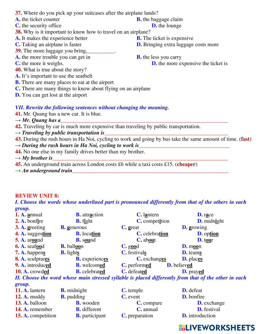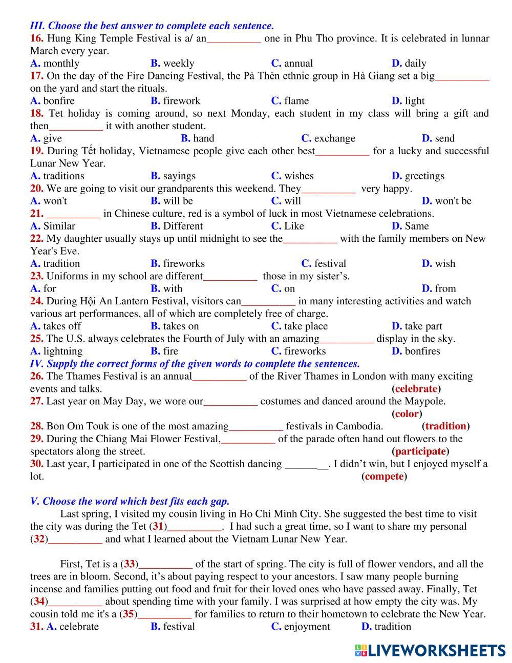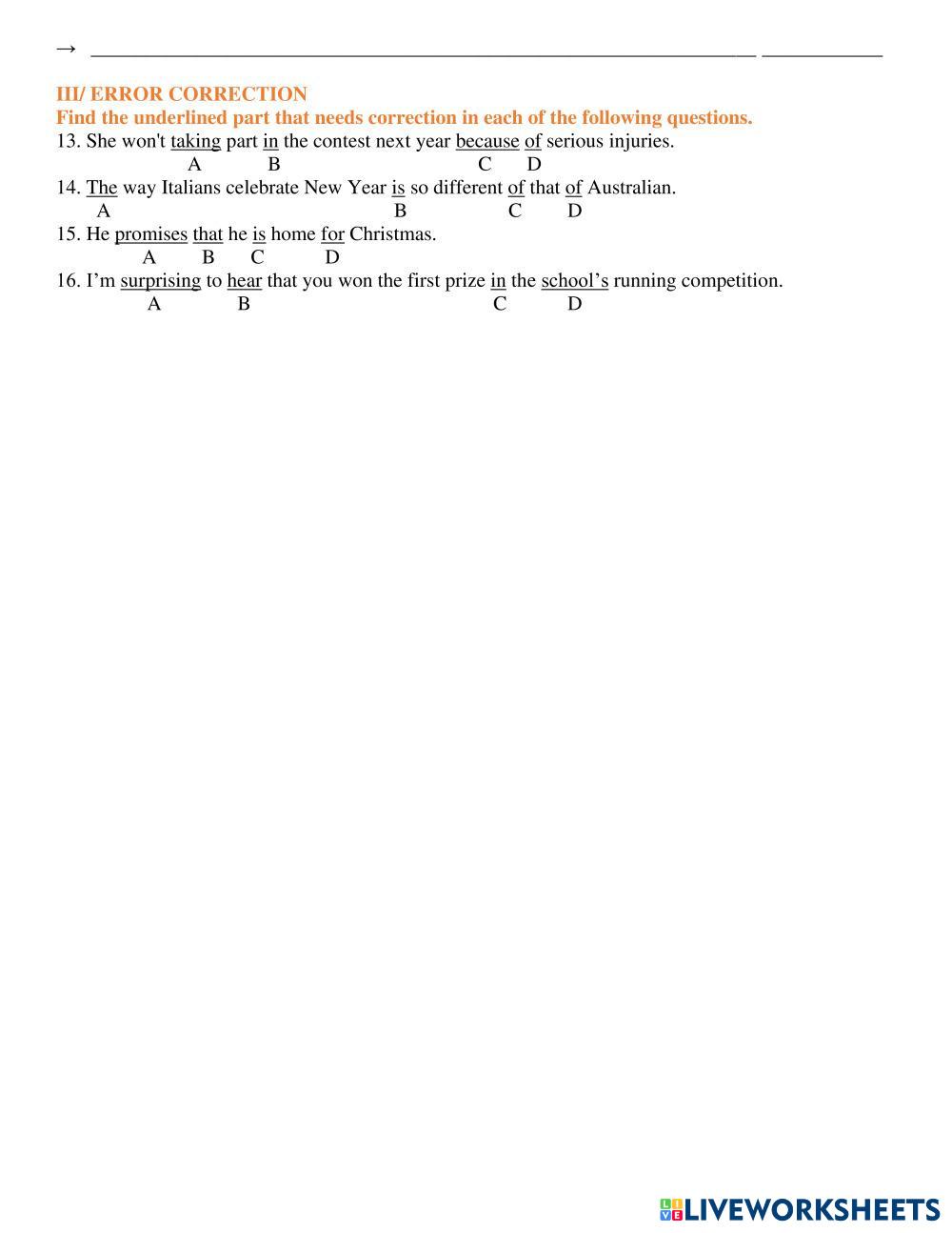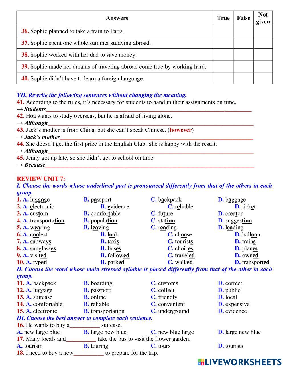 Created byVo Phuong Linh English Language Middle School 7th grade Grammar English Author's Instructions MID TERM 7 HK 2 My Google Classroom Courses × 0 classes selected (0 students total) Quick Access Select all classes (0 classes) All Classes Loading courses... Cancel Share Share to selected Course __COURSE_NAME__ __STUDENT_NAME__ (__STUDENT_EMAIL__) MID TERM 7 HK 2 Download Worksheet Validation Check my answers Emails my answers to my teacher Full name Group/level School subject Teacher's email or key code Close Submit Validating worksheet... (12) Your answers have been sent to your teacher. Good luck! OK We encountered an error submitting your answers. Please try again. OK Advertisement | Go Ad Free Created byVo Phuong Linh English Language Middle School 7th grade Grammar English Author's Instructions MID TERM 7 HK 2 Explore Worksheets LAS CLASES DE PALABRAS English Language 7th grade LAS CLASES DE PALABRAS Grammar - English Language Arrastra cada palabra a la columna que corresponde. Recuerda leer los cuadros de teoría para ayudarte. LAS CLASES DE PALABRAS English Language 7th grade LAS CLASES DE PALABRAS Grammar - English Language Arrastra las palabras a la columna correspondiente LAS CLASES DE PALABRAS English Language 7th grade LAS CLASES DE PALABRAS Grammar - English Language Realiza las siguientes actividades sobre las clases de palabras Online_Viet Teacher_S7_W30_U6_Grammar Revision English Language 7th grade Online_Viet Teacher_S7_W30_U6_Grammar Revision Grammar - English Language Online_Viet Teacher_S7_W30_U6_Grammar Revision