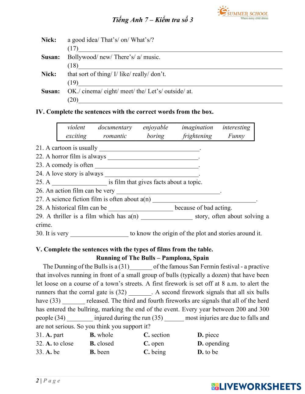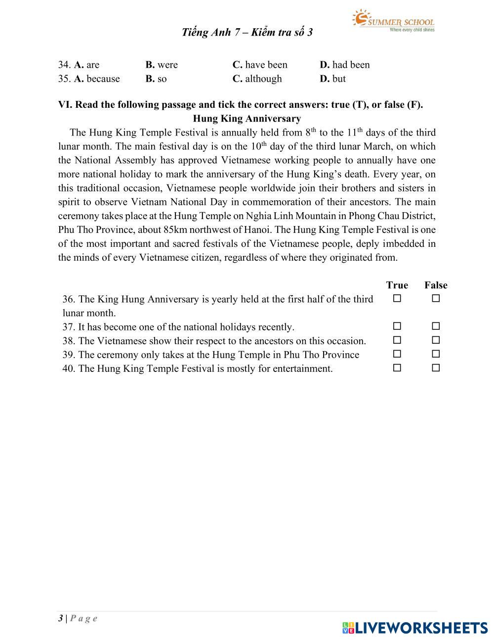 Created byTrung tâm tiếng Anh Summer School English Language Middle School 7th grade Grammar English Author's Instructions ABC My Google Classroom Courses × 0 classes selected (0 students total) Quick Access Select all classes (0 classes) All Classes Loading courses... Cancel Share Share to selected Course __COURSE_NAME__ __STUDENT_NAME__ (__STUDENT_EMAIL__) TA7_Global Success_Test 3 Download Worksheet Validation Check my answers Emails my answers to my teacher Full name Group/level School subject Teacher's email or key code Close Submit Validating worksheet... (12) Your answers have been sent to your teacher. Good luck! OK We encountered an error submitting your answers. Please try again. OK Advertisement | Go Ad Free Created byTrung tâm tiếng Anh Summer School English Language Middle School 7th grade Grammar English Author's Instructions ABC Explore Worksheets المفعول به English Language 7th grade المفعول به Grammar - English Language أجب عن الأسئلة التالية unit 7 review English Language 7th grade unit 7 review Grammar - English Language answer the questions SS1 PU6 - DEALING WITH FEAR English Language 7th grade SS1 PU6 - DEALING WITH FEAR Grammar - English Language SS1 PU6 - DEALING WITH FEAR G7 U1 Listening Big 4 English Language 7th grade G7 U1 Listening Big 4 Grammar - English Language G7 U1 Listening Big 4