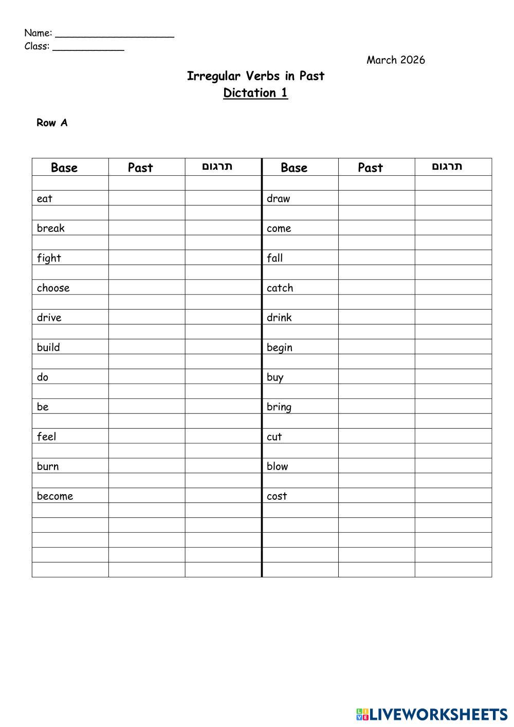 .אנא מלאו את צורת העבר והפירוש של כל פועל